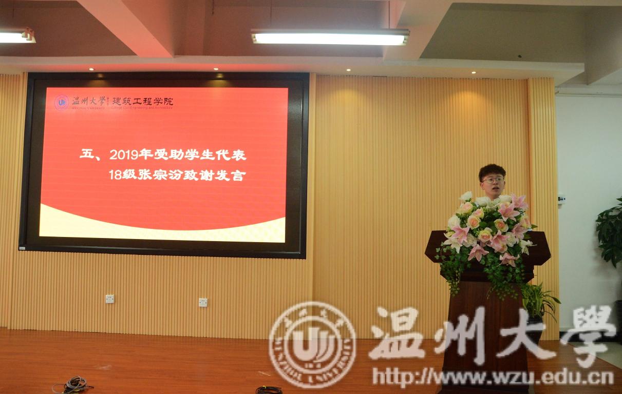 受助学生代表13级学生高紫阳感恩蒋先生的资助使得他在求学的道路上走得更远,如今他即将开始博士研究生生涯。“蒋先生的资助意味着他不用老是盯着各种兼职群找工作;意味着就不用老是站在来来往往的同学中间发传单;意味着可以和普通的同学那样感受朝气蓬勃的大学生活”,18级学生张宗汾这样说到。他们分别结合自己的经历,说明了这笔奖助学金给他们的生活所带来的巨大帮助,也表达了对蒋维清校友的感谢之情。