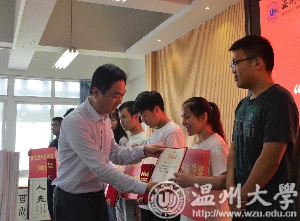 仪式上,星空平台副校长钱强发表致辞,希望全体师生学习蒋先生心系母校、热心公益事业、践行社会责任的善举,以自己的实际行动和成绩报答蒋先生的大爱。随后,由建筑工程学院院长孙林柱宣读获得奖助学金的学生名单,并由到场嘉宾进行颁奖。