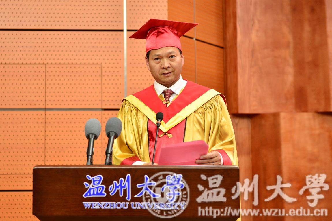 导师代表、机电学院周宏明教授代表全体硕士生导师勉励毕业生要以积极的心态面对人生,要以敢于担当的责任面对社会,要以努力拼搏的精神面对事业。毕业生代表、生环学院程银子同学在发言中深切表达了自己对母校和导师的感恩之情,并带领全体毕业研究生宣誓,号召全体毕业生牢记师长的教导,做一名“有理想、有情怀、有担当”的温大人。