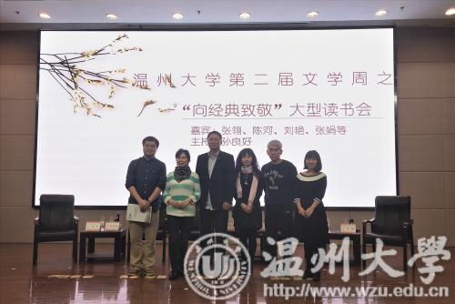 2018年11月15日18时30分,我校第二届文学周之“向经典致敬”大型读书会于育英图书馆学术报告厅举行。本次活动由人文学院院长孙良好主持,海外华人作家、驻校作家张翎、海外华人文学作家陈河、中国社会科学院博士刘艳、东南大学人文学院副教授张娟以及当代著名作家王手受邀参加本次活动。