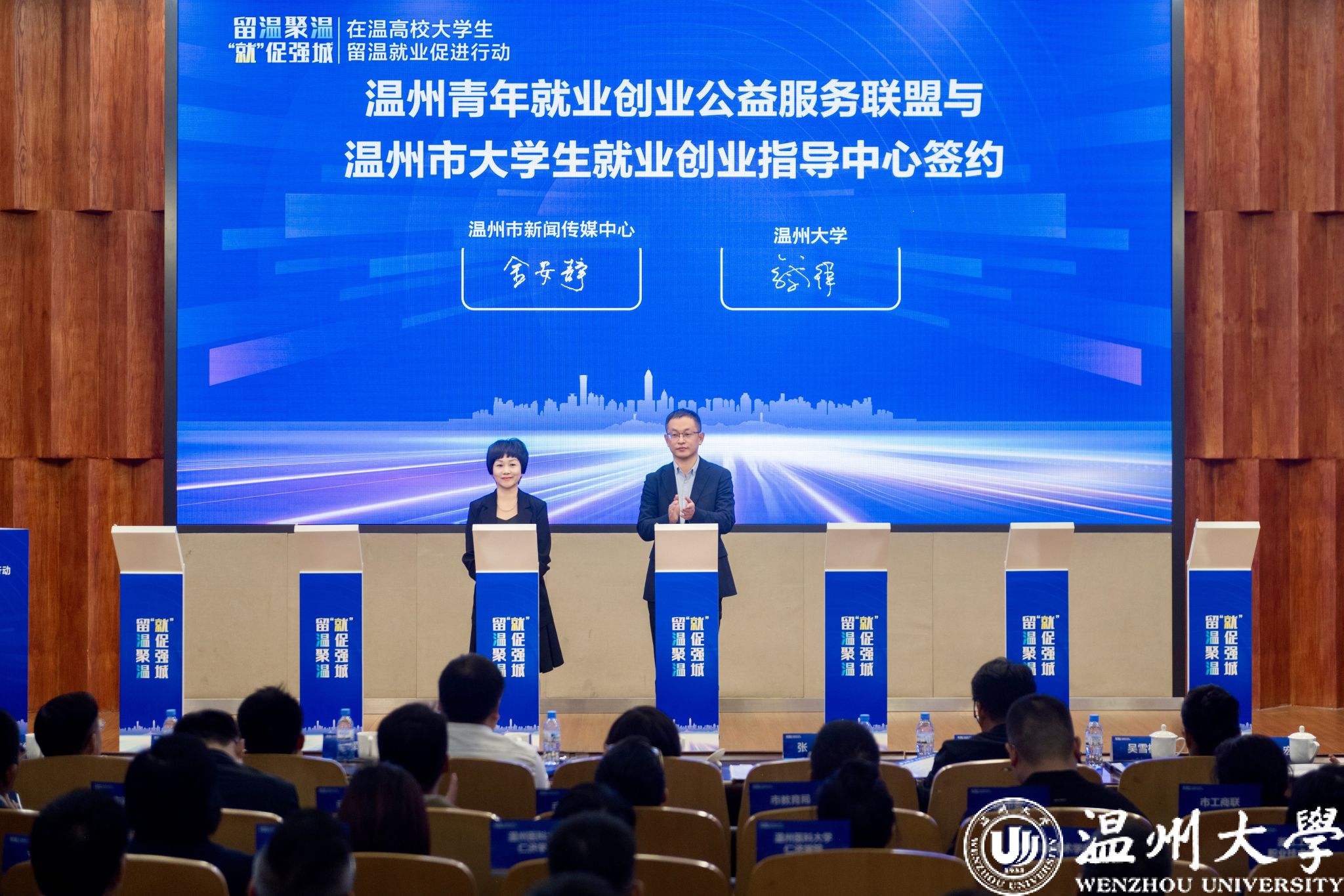星空平台招生与就业处负责人作为校方代表分别与浙江大学温州研究院、温州湖南商会现场合作签约。星空平台生就业创业指导中心与温州青年就业创业公益服务联盟共结促就业创业联盟。
