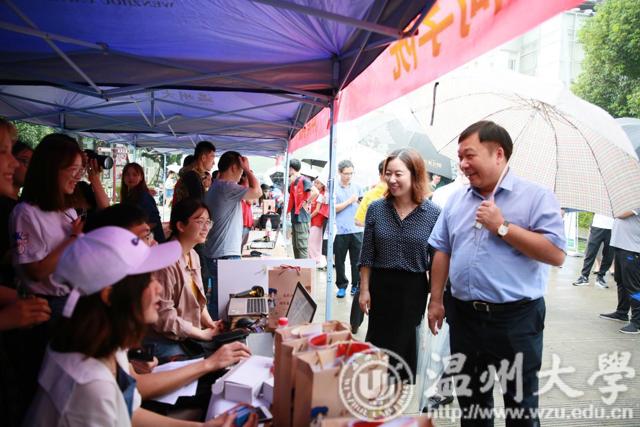 校党委书记林娟娟,校长赵敏来到迎新现场看望前来报到的家长和学生,询问迎新各项工作进展情况,了解新生报名、住宿安排、学费缴纳以及后勤服务等工作落实情况并与各学院、学区相关负责人、新生及家长亲切交流。