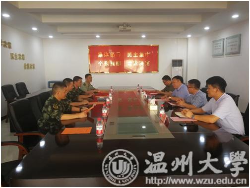 7月27日下午,我校党委副书记赵敏带领学生处、瓯江学院相关负责人来到武警温州支队驻地,向全体武警官兵致以节日的祝福和问候,并送上慰问品。