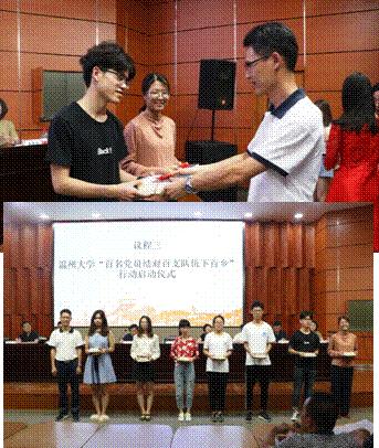 出征仪式上,大家首先观看了《践行新思想 奉献新时代——星空平台2018暑期社会实践暨“新青年下乡”集中行动”》的视频。校团委书记屠霁霞对星空平台暑期社会实践暨新青年下乡工作情况进行了介绍。紧接着进行了星空平台“百名党员结对百支队伍下百乡”行动启动仪式,校党委组织部常务副部长金庆良老师为实践队代表赠送《习近平新时代中国特色社会主义思想三十讲》。随后,社会实践指导老师代表易招娣和社会实践队员代表孙伟杰就暑期社会实践的相关事宜分别发言。