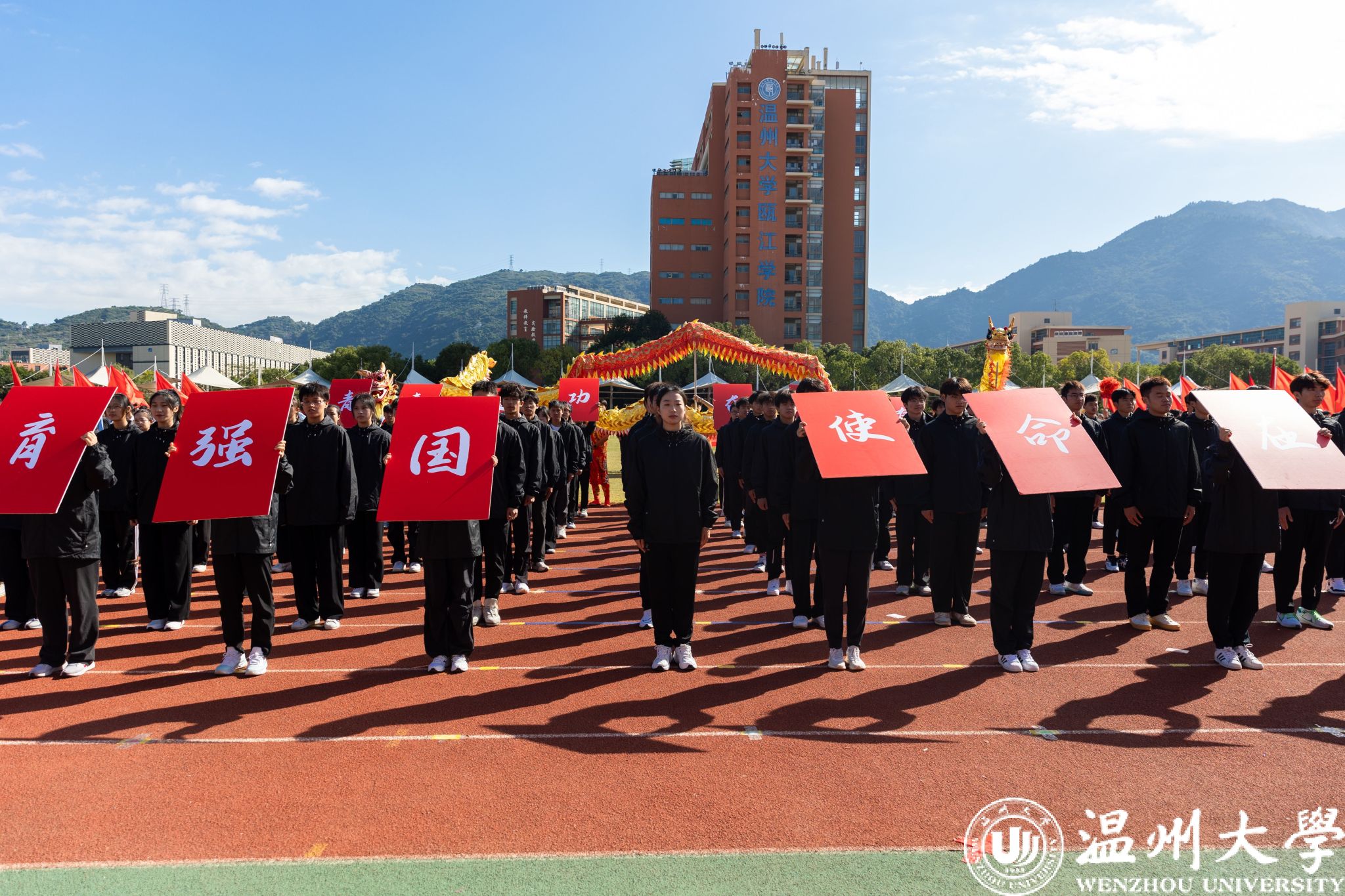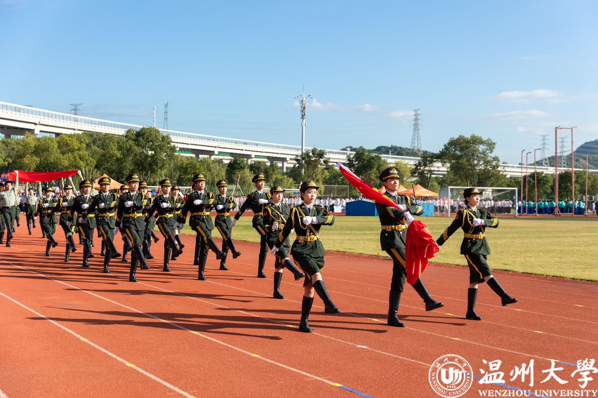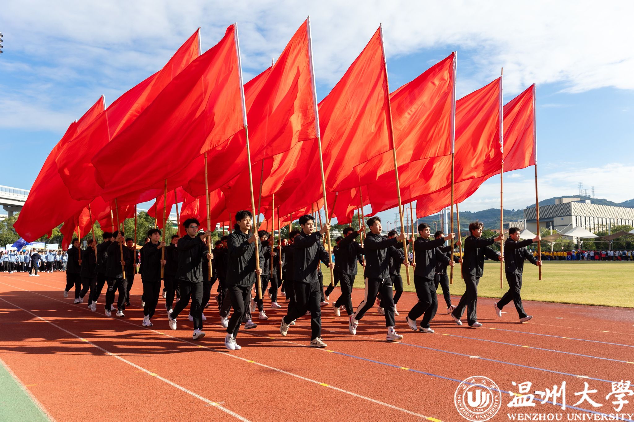 各学院方阵依次走过主席台,他们创意十足,展示着各自的特色与风采。有学院身着多彩的民族服装,展现出团结奋进的精神风貌;有学院结合专业特长,充分体现了学科特点和文化内涵。同学们精神抖擞、口号嘹亮,充分彰显了温大学子的蓬勃朝气和昂扬斗志。