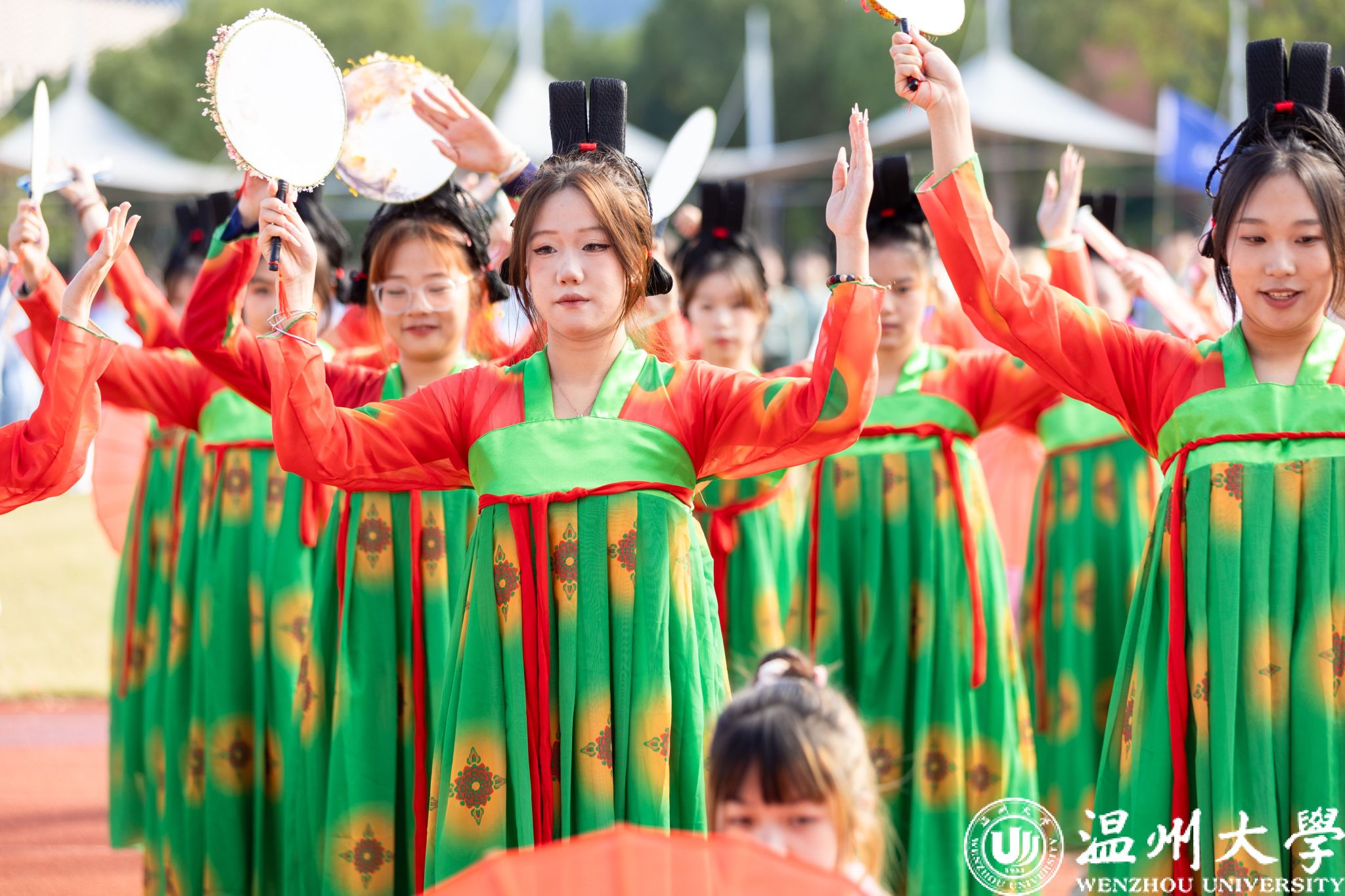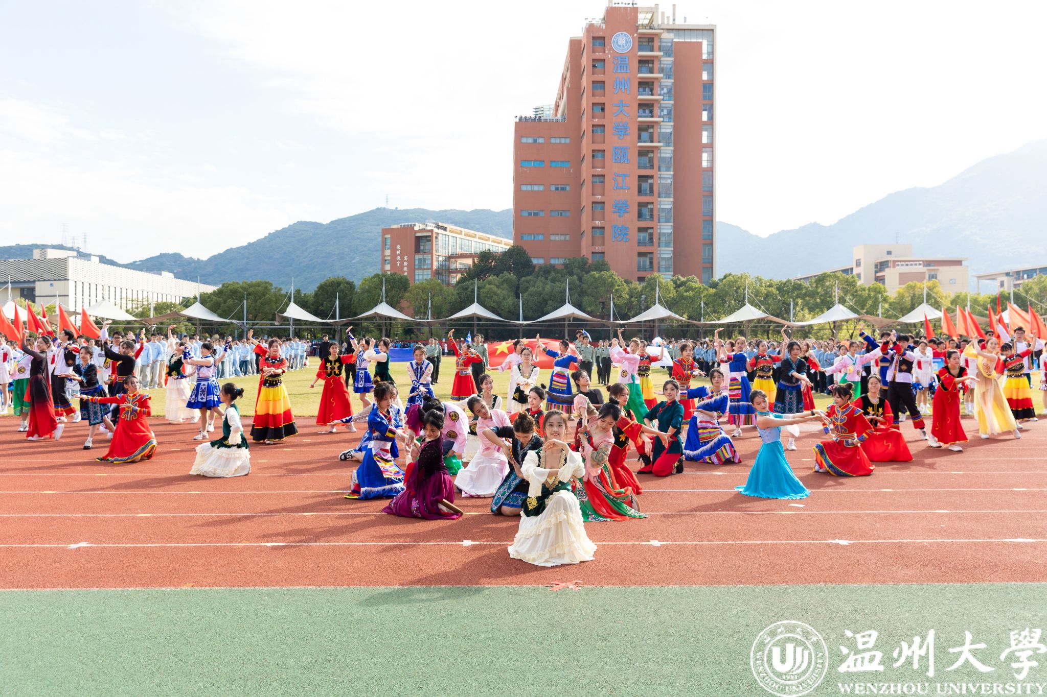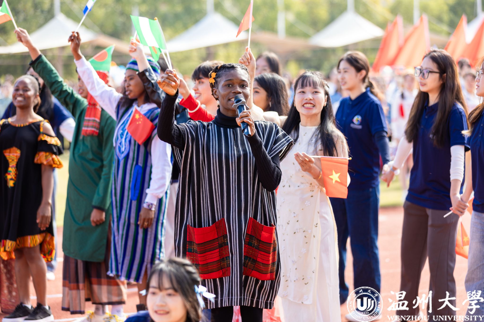 各学院方阵依次走过主席台,他们创意十足,展示着各自的特色与风采。有学院身着多彩的民族服装,展现出团结奋进的精神风貌;有学院结合专业特长,充分体现了学科特点和文化内涵。同学们精神抖擞、口号嘹亮,充分彰显了温大学子的蓬勃朝气和昂扬斗志。