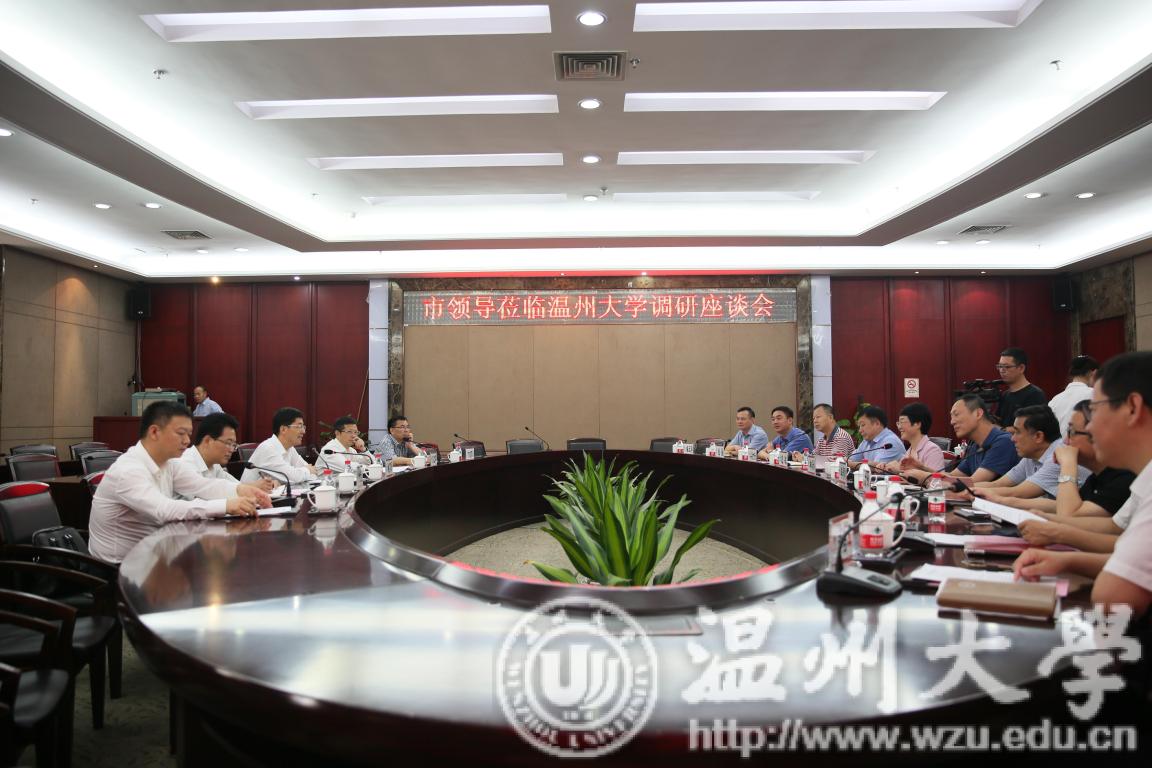 6月1日下午,温州市委副书记、市长姚高员,市政府秘书长彭立华、副秘书长叶世强等一行来我校调研。姚高员一行参观了我校产教融合大楼、校史馆,并召开座谈会了解学校建设发展情况,全体校领导参加座谈。
