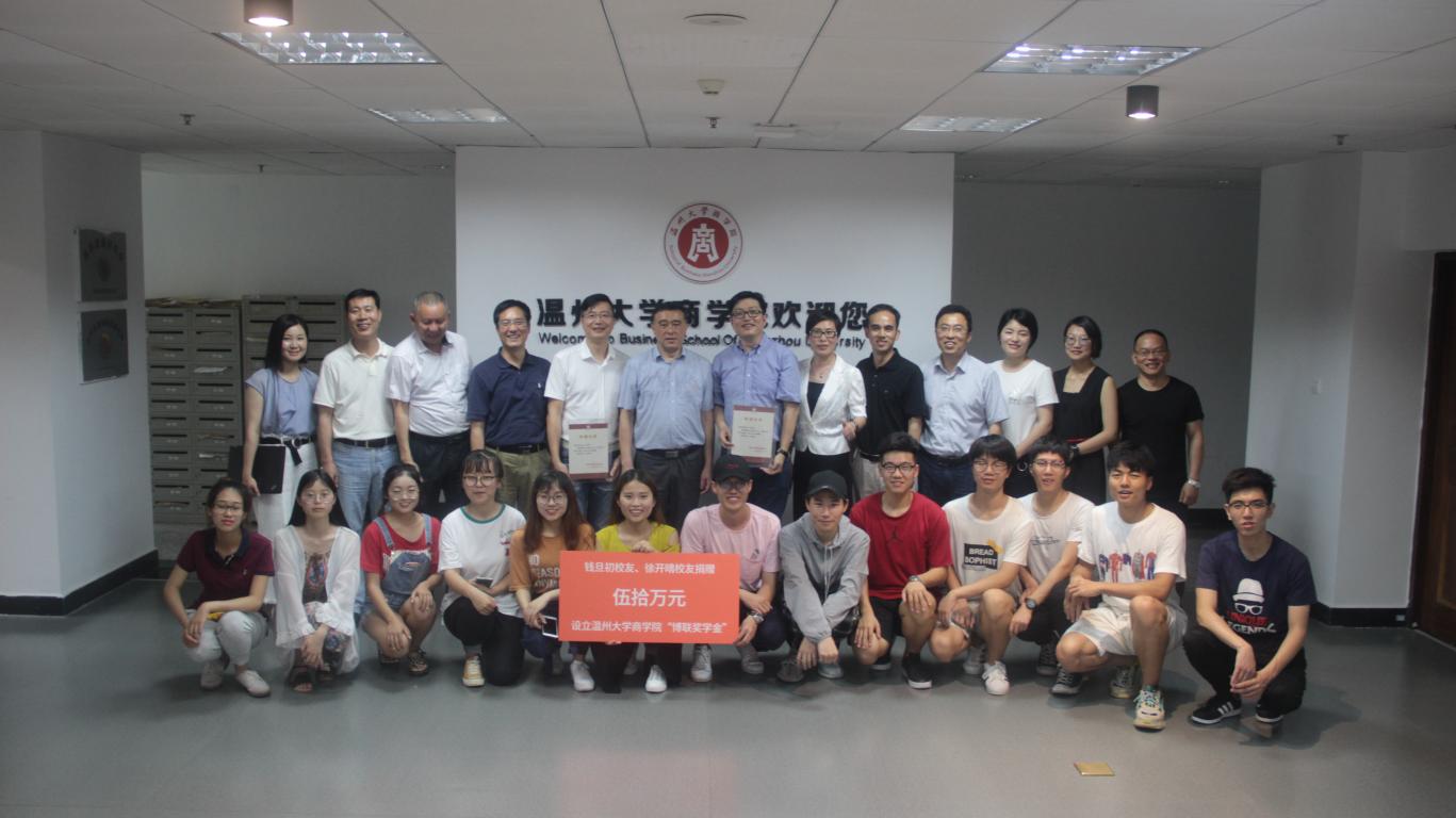 为助力校企联合育人,回馈母校的培养,5月18日下午,在星空平台85周年校庆之际,商学院优秀校友钱旦初、徐开晴重返母校,捐款50万元设立商学院“博联奖学金”,用于激励品学兼优的商院学子。