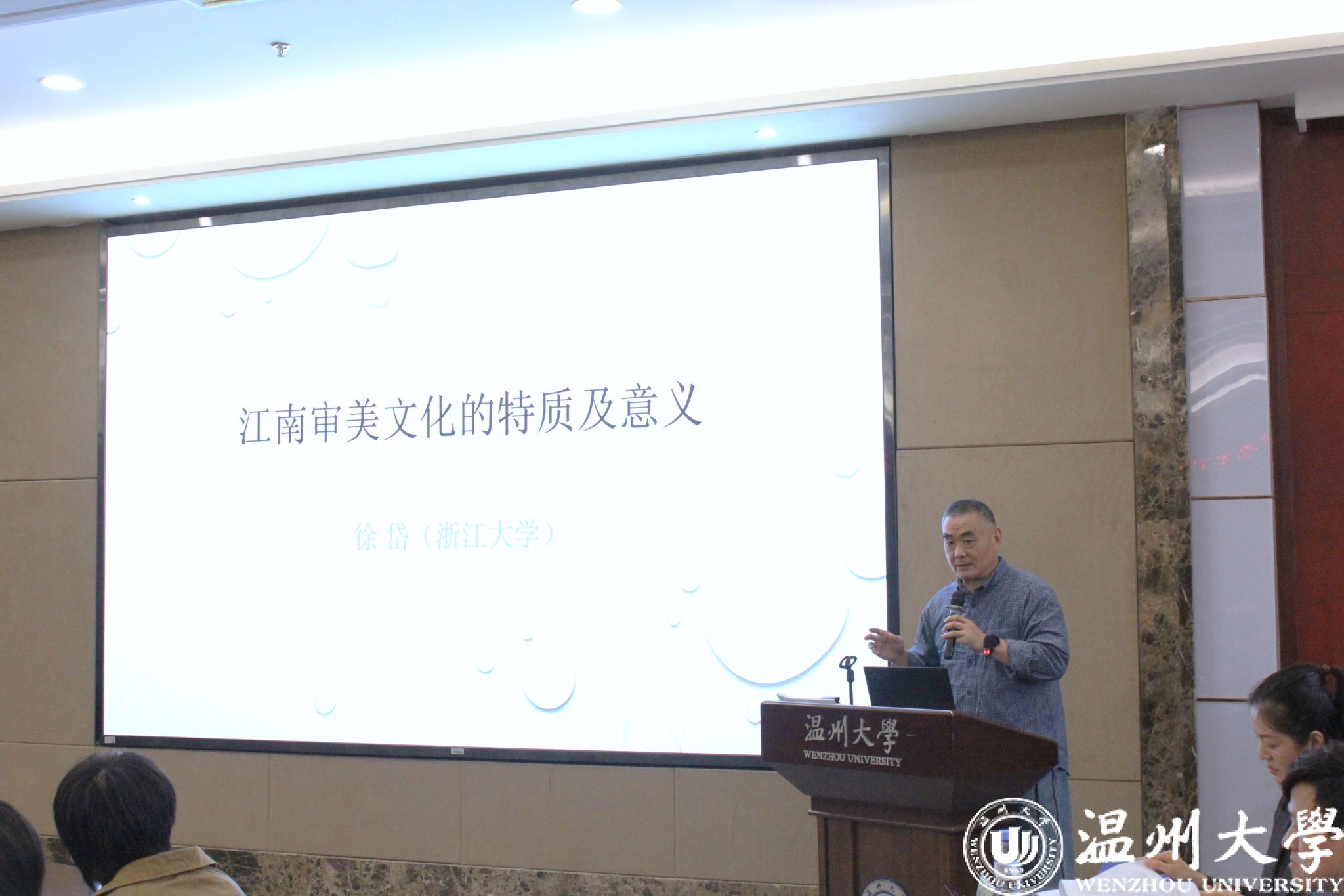 开幕式后,三位专家在白鹿厅作主旨演讲报告,和与会学者交流,对江南文化从不同切入点进行剖析。