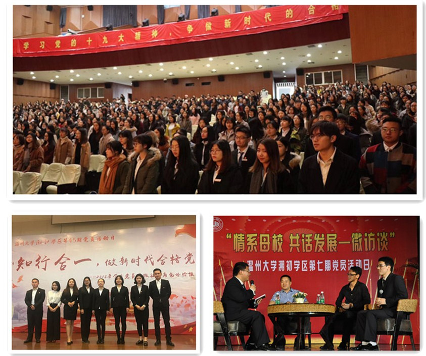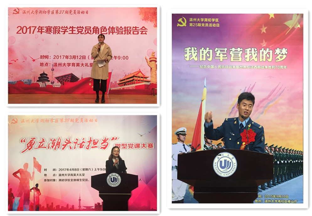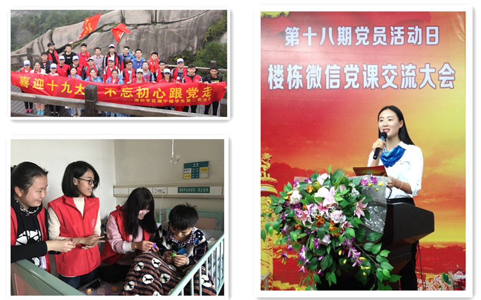 3.党建工作的社会效益初显成效。通过“党员活动日”的长期坚持,学生党员们积极走出校园,走入社会,在服务他人的过程中,展示党员风采。在温医大附二院,党员志愿者们坚持6年每月为患病儿童读书读报,辅导学习;在温州城市规划展示中心,党员志愿者踊跃担任讲解员,积极宣传大美温州;在鹿城藤桥山区,党员志愿者坚持每半月为留守儿童送教下乡;在乐清湖雾镇,党员志愿者积极投身五水共治,出色完成新青年下乡的工作任务……尤其令人感动的是,2016年9月,温州遭遇超强台风“莫兰蒂”的袭击,泰顺、平阳等地遭受严重破坏,学区的党员志愿者第一时间赶赴平阳,积极帮助当地进行台风灾后重建工作,贡献青春力量,获得广泛的社会赞誉!