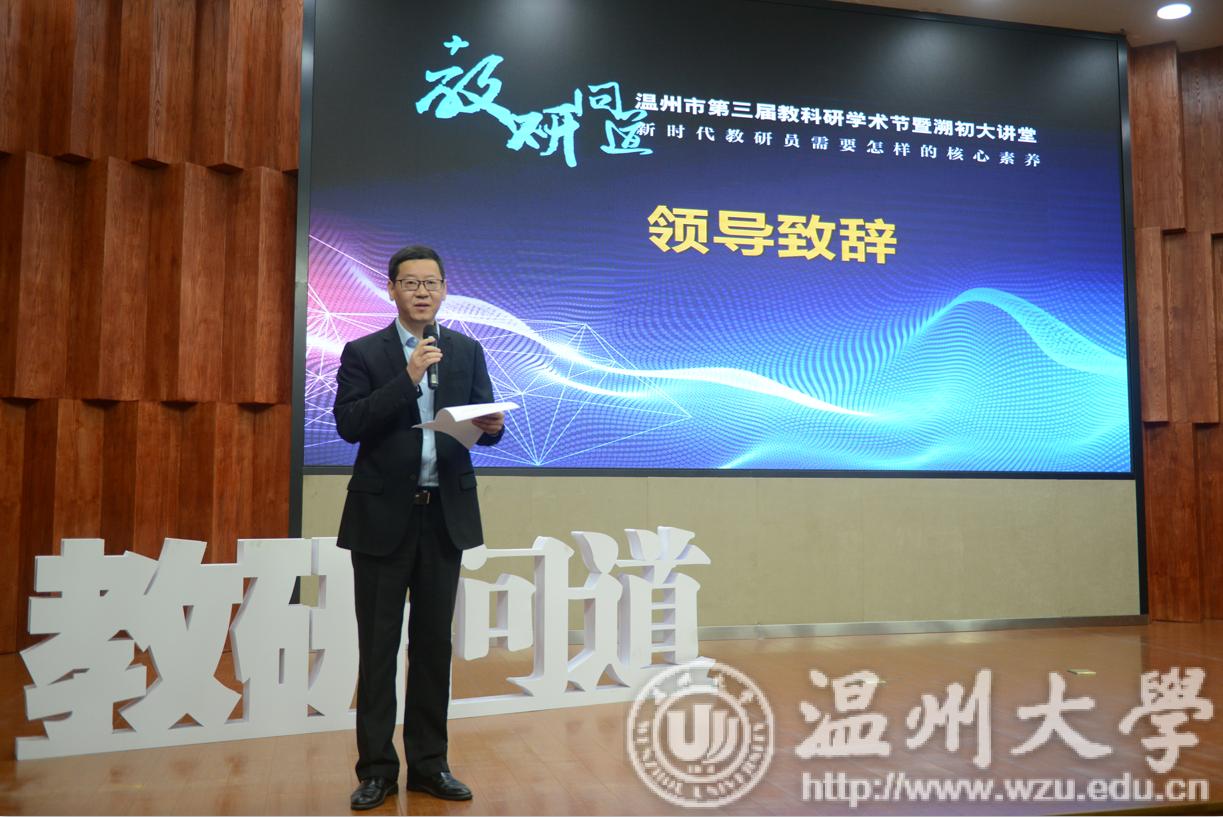 为进一步促进温州基础教育教科研发展,增强温州教育的文化自信,3月30日,由温州市教育教学研究院、我校教师教育学院共同举办的温州市第三届教科研学术节暨溯初大讲堂于南校岩松堂雁山厅举行。华东师范大学教育科学学院教授、博士生导师胡惠闵教授,温州市教育局党委委员、副局长王剑波,校党委委员、组织部长郑信军,全市各县(市、区)教育局负责人,各学科300多位教研员,全校师范类专业师生莅临现场,共同探讨“新时代教研员需要怎样的核心素养”。