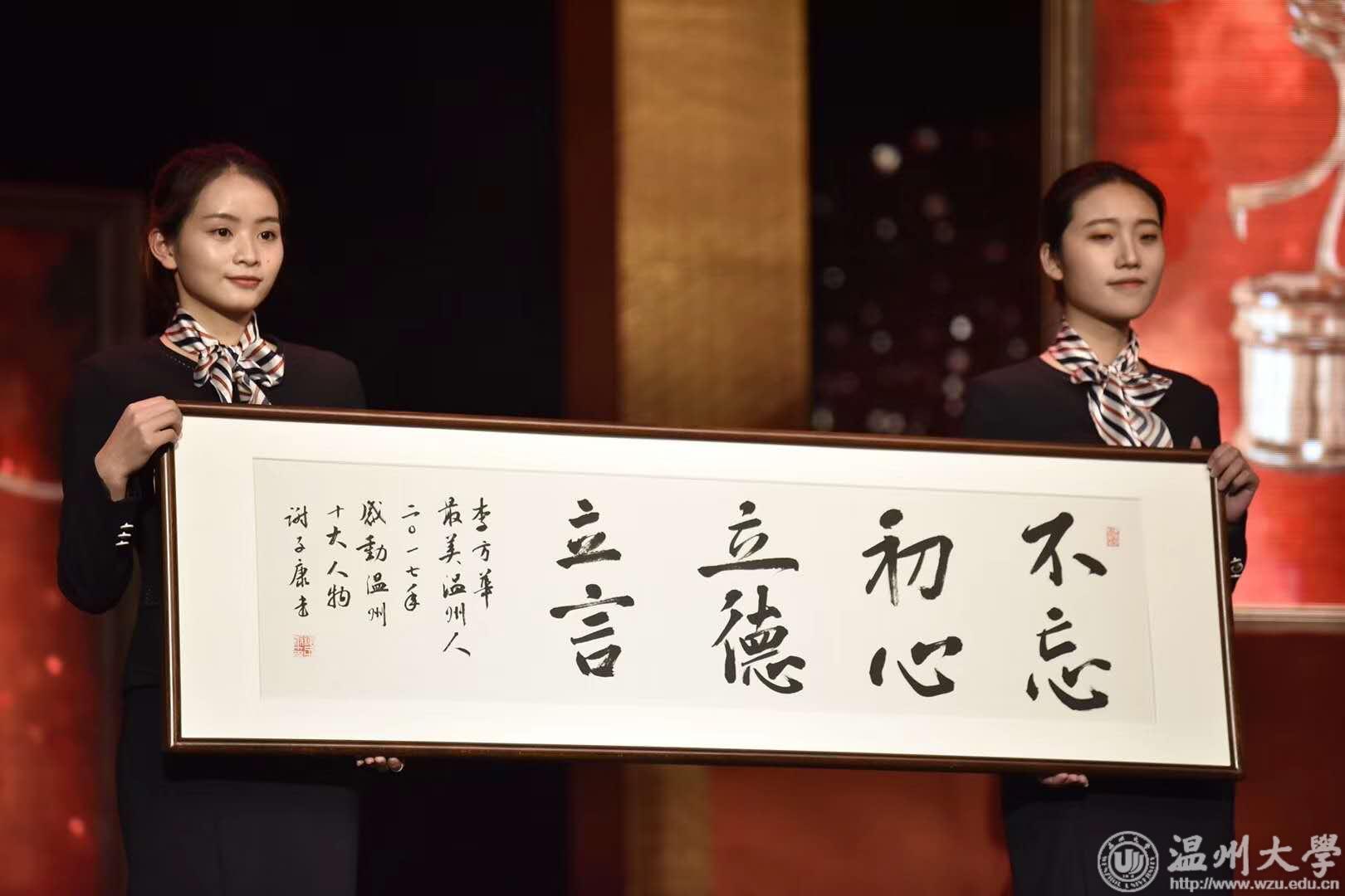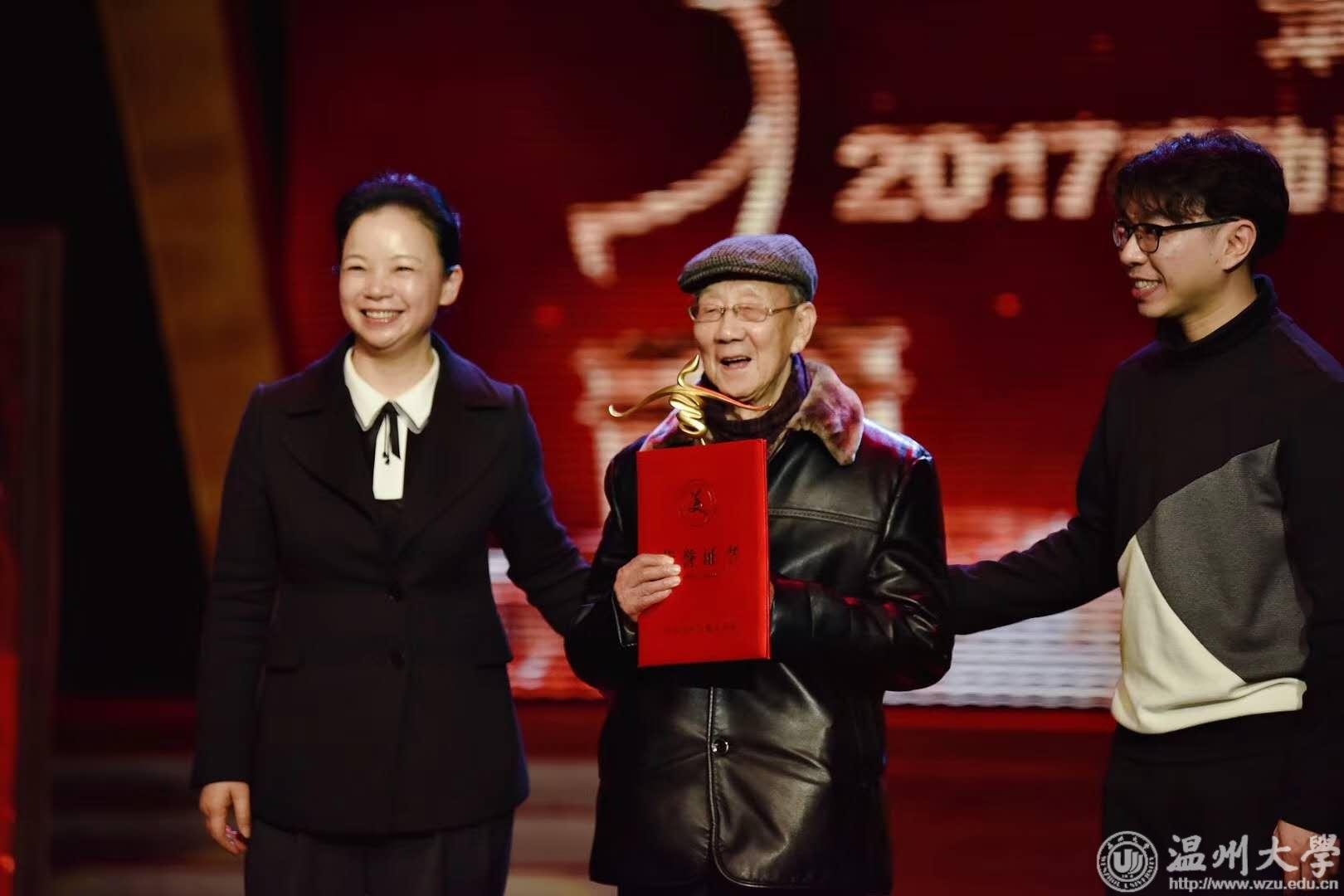 3月5日晚,“最美温州人——2017感动温州十大人物”颁奖典礼在温州市广电中心举行,我校离休干部李方华被评为“最美温州人——2017感动温州十大人物”。典礼上,市委常委、宣传部长胡剑谨为李方华颁奖。