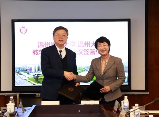 2月12日上午,我校与温州医科大学教学资源共享协议签署仪式在温州医科大学同心楼举行。校长李校堃、副校长方益权,温州医科大学校长吕帆、副校长金胜威,两校相关职能部门和学院负责人参加了签署仪式。