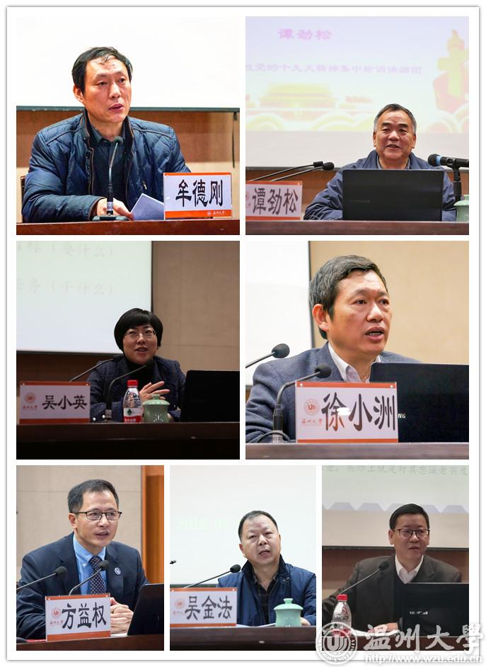 牟德刚在总结中指出,学习贯彻党的十九大精神,就是要以“一以贯之”的精神学懂弄通做实党的十九大精神;以 “自我革命”的精神推动学校全面改革发展;以“勇立潮头”的精神打造温大版的教育铁军。全校上下肩负起办好人民满意的教育神圣使命,努力培养出又红又专、德才兼备、全面发展的中国特色社会主义合格建设者和可靠接班人。