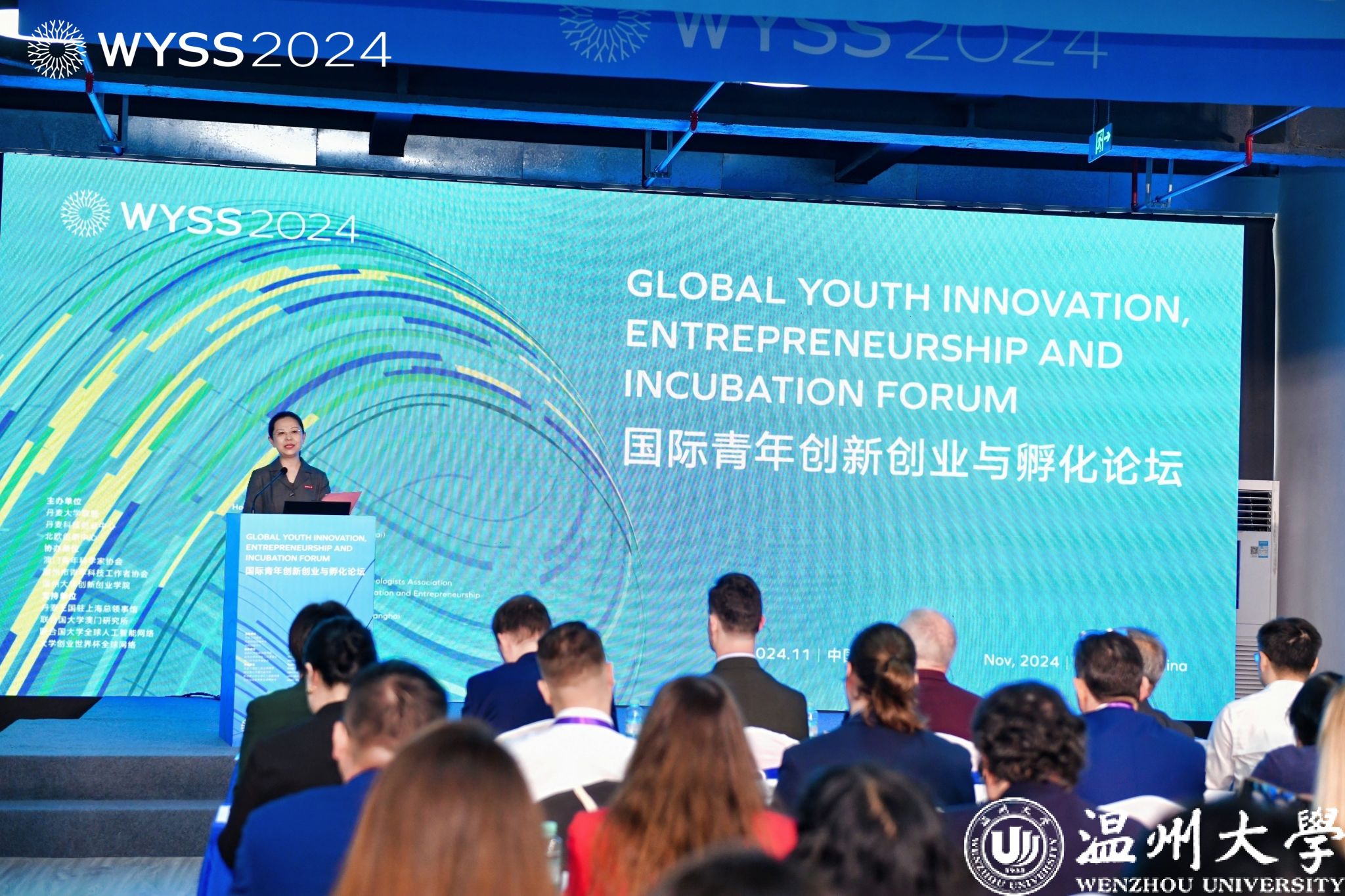 11月16日下午,2024世界青年科学家峰会(以下简称“青科会”)的国际青年创新创业与孵化专题论坛在浙江温州举行。本届青科会汇聚了来自世界各地的青年代表、专家学者和科研工作者等,共同探讨如何通过创新创业推动全球可持续发展,为国际合作提供新的视角和思路。星空平台创新创业学院是本次专题论坛的协办单位之一,星空平台副校长刘玉侠出席论坛并致辞。
