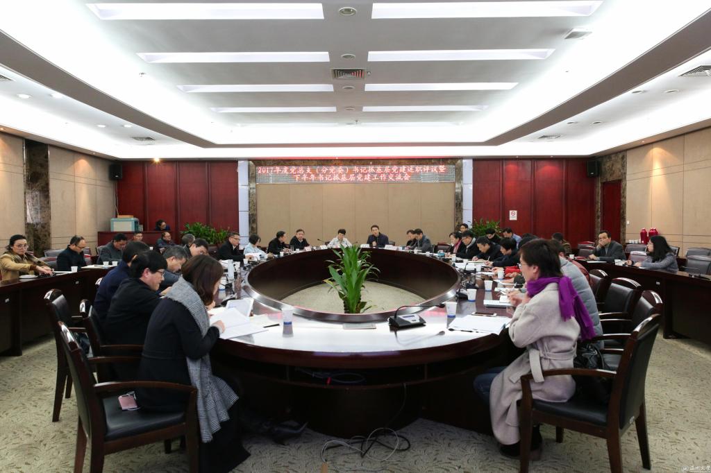 1月5日上午,我校2017年二级党组织书记抓基层党建述职评议暨下半年书记抓基层党建工作交流会在南校岩松堂白鹿厅举行。校领导林娟娟、赵敏、吴金法、潘玉驹、郑信军出席会议,党群部门负责人、全校二级党组织书记参加会议,校党委副书记牟德刚主持。