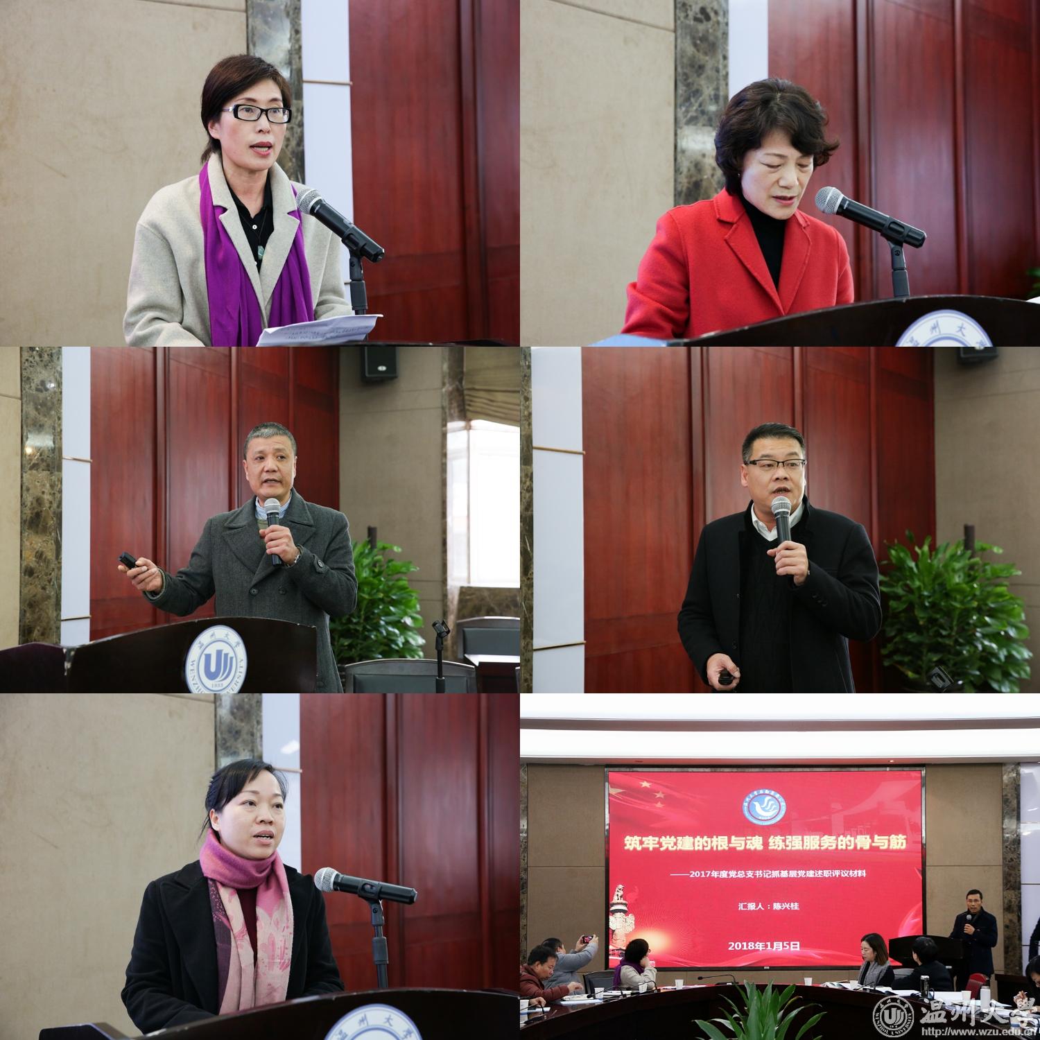 商学院等单位的6位二级党组织书记围绕履行党建责任情况、基层党建进展情况和成效、思想政治工作情况、本单位党建工作存在突出问题及加强和改进工作的思路措施等四个方面作述职典型发言,其他16位二级党组织书记作书面述职,展示亮点、探讨问题、商量对策、交流互鉴。牟德刚作点评。