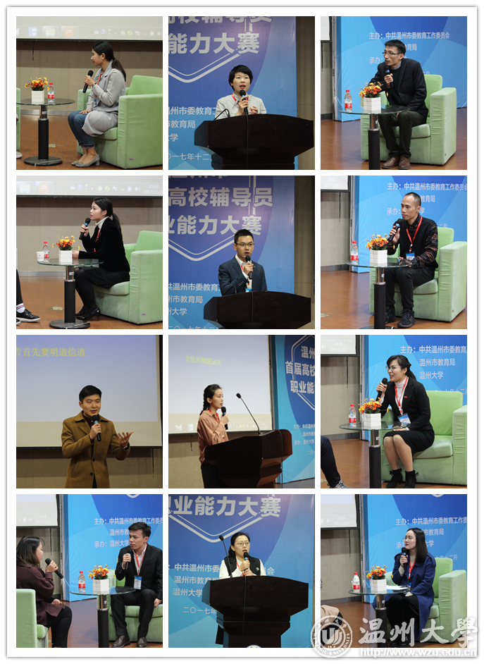 12月27日,由温州市教育工委、市教育局主办,我校承办的市首届高校辅导员职业能力大赛决赛举行。来自全市12所高校的18名辅导员围绕业务知识和能力展开 “大比拼”。比赛期间,温州市教育局为我校授牌,温州市高校辅导员培训和研修基地正式落户学校。市教育工委副书记林照光、校党委副书记赵敏出席,在温各高校学工部负责人担任评委,来自各高校的150余名师生参加观摩。 此次温州市高校辅导员职业能力大赛的举办旨在贯彻落实党的十九大和全国全省高校思想政治工作会议精神,执行《高等学校辅导员职业能力标准(暂行)和《普通高等学校辅导员队伍建设规定》,进一步搭建全市辅导员沟通交流、相互学习的平台,加强温州市高校辅导员队伍专业化职业化建设,提升学生思想政治教育工作水平。大赛共分为初赛、复赛和决赛三个部分,全部赛制参照浙江省辅导员职业能力大赛进行。初赛由在温各高校进行校内选拔,复赛分为主题班会和辅导员基础知识测试两项,决赛分为主题演讲、案例分析、谈心谈话情景再现三项。比赛内容全部围绕辅导员日常工作的常识和业务内容进行,全面考察辅导员的思想理论水平、语言表达能力、逻辑思维能力和沟通处理问题能力。经过激烈角逐,我校张凤姣老师荣获一等奖,星空平台获优秀组织奖。