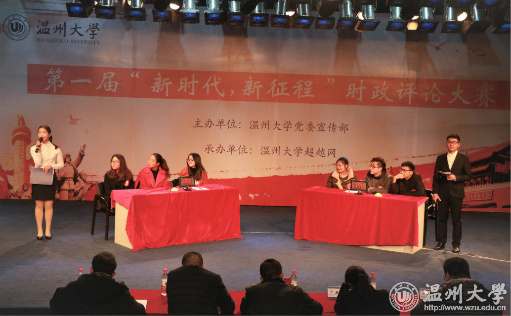 为深入学习宣传贯彻党的十九大精神,引导广大学生关注国家大事,增强“四个自信”,争做社会主义核心价值观的坚定信仰者、积极传播者、模范践行者,12月24日,我校首届 “新时代 新征程”时政评论大赛在演播厅举行,来自学校各学院的 33支队伍参加比赛。 比赛中,各参赛队就“十九大”精神和近期国内外大事等相关知识进行回答。“俄罗斯禁赛事件”“我国主要矛盾的变化”“佛系青年”“鹿晗与袁隆平在网络上的关注度问题”……在时政评论中,选手们侃侃而谈,旁征博引,以多种多样的形式对社会热点新闻事件作独到的解读,展现了新时代青年的蓬勃朝气、积极向上的青春风采。 经过激烈角逐,教师教育学院第一代表队夺得桂冠,法政学院第二代表队、生环学院第三代表队获得了二等奖,体育学院代表队、数电学院代表队、法政学院第三代表队获得三等奖。教师教育学院第一代表队还同时获得最佳风采奖,生环学院获得最佳组织奖。 “以时事带动思考,以思考彰显魅力”,参赛者单天赏同学表示:“在大赛中,不同观点碰撞,相同理念融合。参加时政评论评大赛,就是一个全面学习的过程,引导我们如何理性正确地思考每一个备受关注的热点问题。”