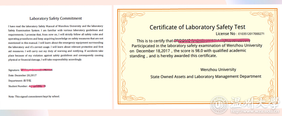 英文版安全责任承诺书和合格证书
