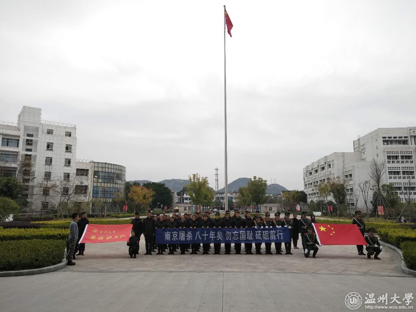 天空阴沉,晦暗不明,国旗却格外鲜艳。12月13日上午,我校学生处组织开展南京大屠杀死难者国家公祭日纪念活动。“升国旗,奏唱国歌,敬礼!”国旗下,所有师生低头默哀,缅怀80年前不幸遇难的30万同胞,缅怀为中国人民抗日战争胜利献出生命的革命先烈和民族英雄。
