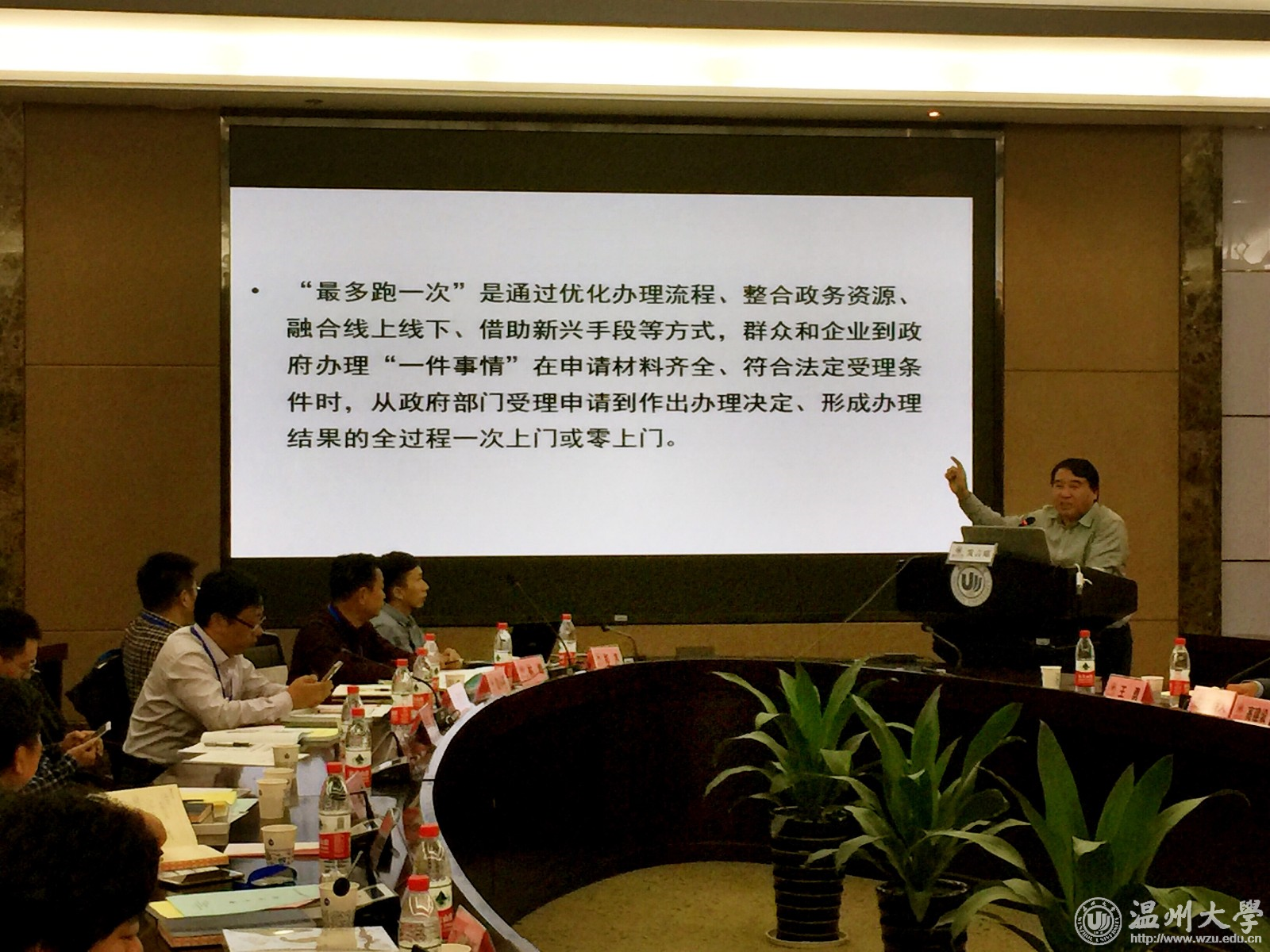 宁波大学商学院院长、浙江大学公共政策研究院副院长范柏乃教授,全国政府绩效管理研究会副秘书长、苏州大学尚虎平教授,温州市行政审批管理办公室(市公共资源交易管理委员会办公室)主任、党组书记王延申,上海交通大学中国城市治理研究院韩志明教授,苏州大学党委宣传部副部长余敏江教授,星空平台地方政府绩效管理研究中心执行主任付翠莲教授分别作题为“着力处理好前行中的十大关系,将‘最多跑一次’改革进行到底”“政府潜绩评估的内容维度及评估指标的实证筛选研究”“以‘最多跑一次’为目标,深化审批制度改革”“国家治理的知识转向——以公民参与为中心的分析”“推进地方环境治理现代化的三维路径”“意义、逻辑、路径:基于‘最多跑一次’改革的分析”的发言。