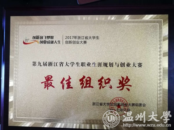 浙江省职业规划与创业大赛是省一级学科竞赛。大赛2017年4月启动, 全省102所高校2.1万大学生参加本次赛事, 640个项目进入省级复赛,最后 162个项目进入总决赛。其中,我校法政学院郑荣权同学参赛项目《在黑暗中追逐光明》以总分第一的成绩获得职业规划类一等奖,并荣获“2017年浙江省最佳职业规划之星”称号;教师教育学院周群慧团队参赛项目《知心童行》以总分第一的成绩获得创业实践类一等奖;机电工程学院屠佳炜团队参赛项目《银装数果》以总分第二的成绩获得创新创意类一等奖;物理与电子信息工程学院陈铮团队参赛项目《温州唐天娱乐传媒有限公司》获得创业实践类一等奖;建筑工程学院杨璐团队参赛项目《精细化三轴试验配套装置研发与推广》获得创新创意类二等奖。孙德升、严晓秋、姜锐、林爱菊、彭小媚等11名老师荣获“浙江省第九届大学生职业生涯规划与创业大赛优秀指导师”称号。