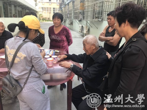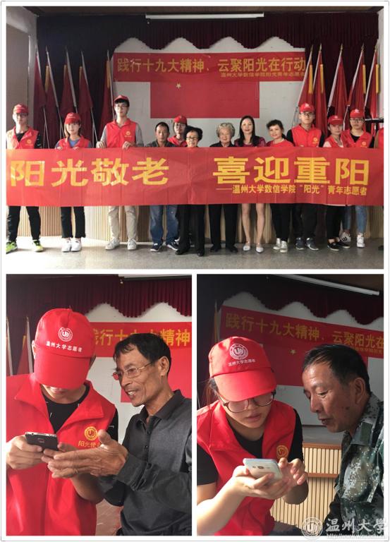 金秋十月,重阳节即将到来,为加强优良传统文化教育,践行党的十九大精神,着力推动社会主义核心价值观建设,积极响应学校深入实施“五爱”主题教育活动和“新青年下乡”活动。我校数信学院“阳光”青年志愿者以及数信学院党支部的志愿者们前往温州市鹿城区七都街道樟里村和板桥村开展“阳光敬老、喜迎重阳”优抚特别活动。 活动面向鹿城区七都社区樟里村和板桥村的优抚退伍老兵以及社区老人开展中医养生知识讲解、教授老人使用智能手机等敬老服务活动。为了使老人们的日常生活更加方便,志愿者们耐心地教授老人使用智能手机,为老人们解决了在使用手机方面的一些困惑,此外也教会了一些老人们关于使用微信、进行通讯的简单方法,整个活动过程非常热闹温馨。此外,鹿城区民政局和我校数信学院阳光青年志愿者还为优抚老兵送上真挚的祝福,老兵们纷纷表达了自己对党和国家社会的感激之情。 使命呼唤担当,责任引领未来。此次活动紧密贴合国家优抚政策,从优抚老人的身心健康需求出发,聆听优抚老人心声。志愿者们纷纷表示,身为新时代的青年大学生,每一个人都应该勇于担当,敬老爱老,并将这份传统、这份爱心不断地传承下去。