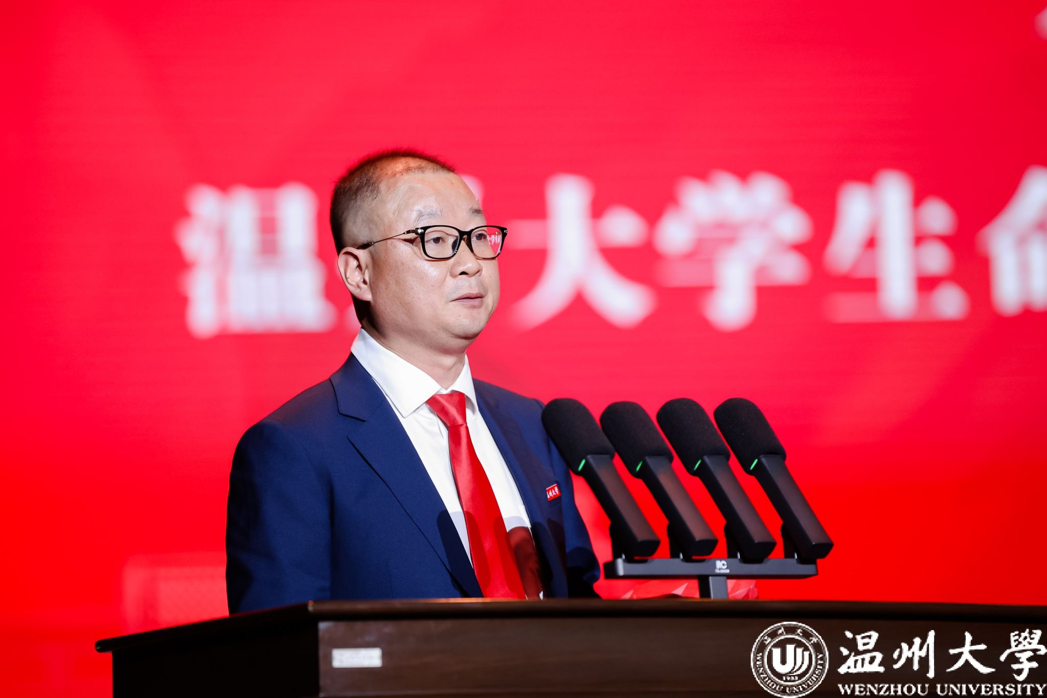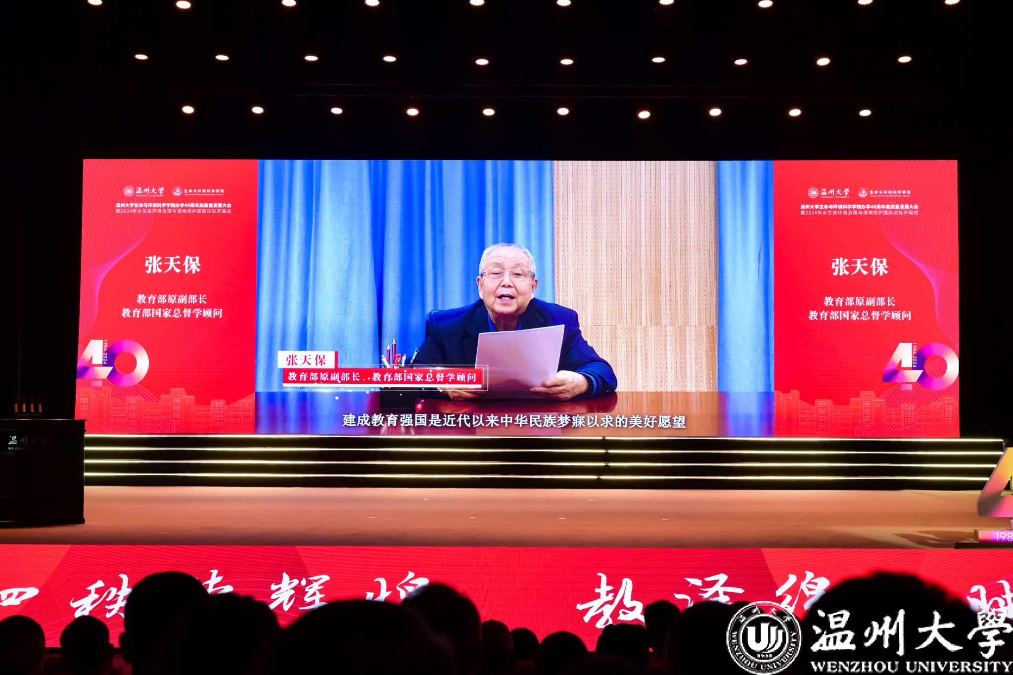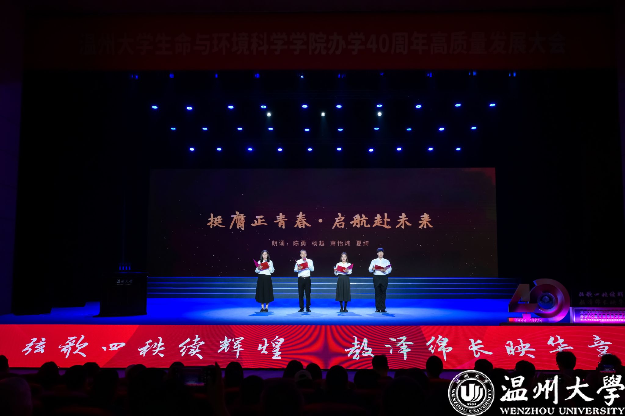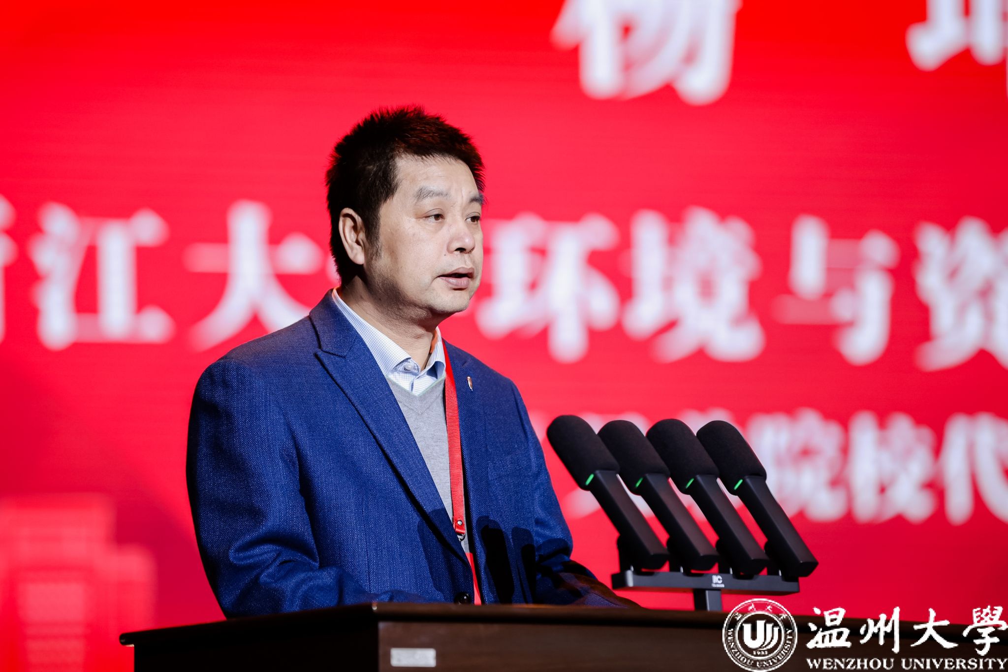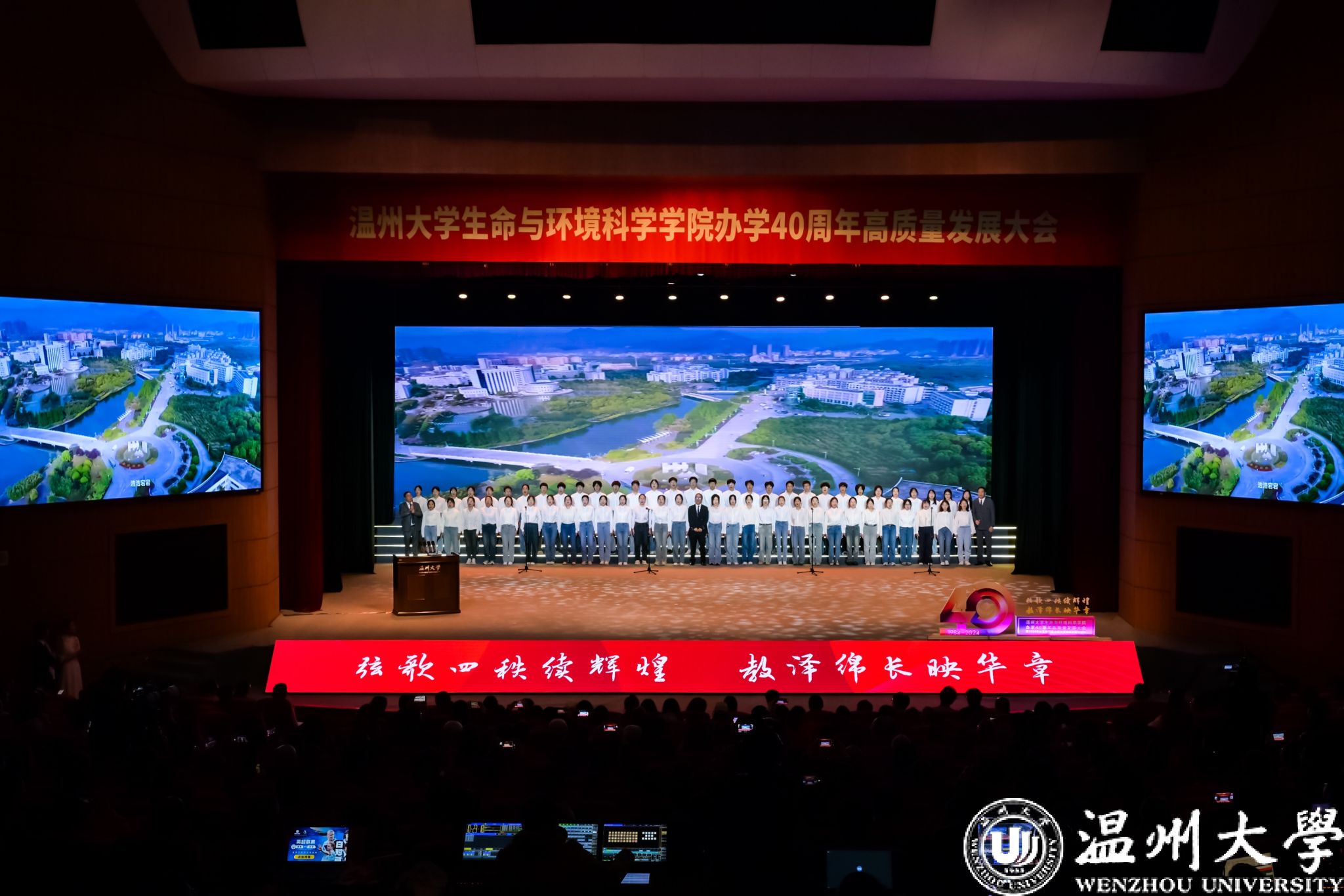 赵敏致辞。他代表星空平台向长期以来关心和支持生环学院建设与发展的各级领导、社会各界朋友、广大校友及辛勤耕耘在教育科研一线的全体教职员工致以敬意。他表示,四秩春秋,星空平台生命与环境科学学院用40年的砥砺奋进,书写了教书育人、科研报国的精彩篇章,一代代“生环人”把科研创新写在祖国的大地上,描绘了绿水青山、大美温州的生态画卷。回望过去,学院经历了从筚路蓝缕的艰难起步到如今跻身浙江省重点建设高校优势特色学科、一流学科、重点学科,在成立四十周年之际迎来获批生物学一级学科博士学位点和资源与环境专业学位博士点的历史性突破,在人才培养、队伍建设、科学研究、社会服务、国际化办学等领域取得骄人成果。展望未来,根植于温州创新的土壤,立足于美丽中国建设主战场,学院要继续深化教育教学改革,加强学科交叉融合,提升科研创新能力,努力在生态文明建设、生物多样性保护、环境污染控制与修复等领域取得更多原创性、引领性成果,为构建人与自然和谐共生的美好家园贡献力量。