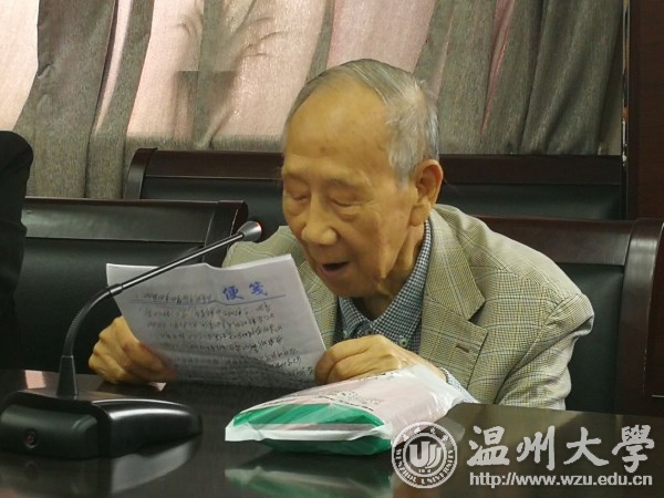 10月20日中午,在南校区行政楼419举行了一场特殊的受赠助学仪式。92岁高龄的原温州师范学院党委书记李方华向学校捐赠18000元,以资助6名2017级家庭经济特困学生,帮助学生渡过难关,助力学子圆梦大学。