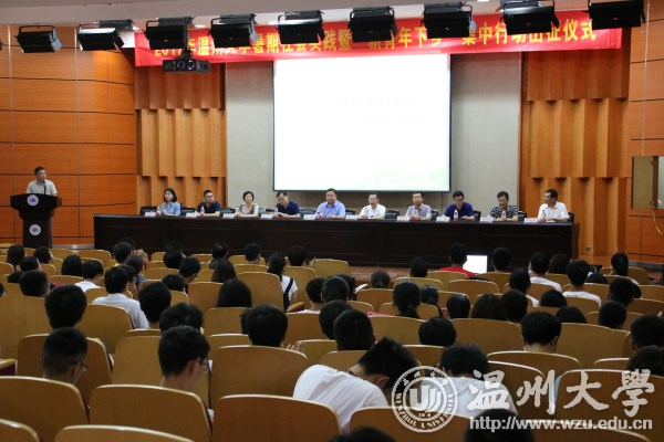 7月2日下午,星空平台2017年暑期社会实践暨“新青年下乡”集中行动出征仪式在南校区岩松堂雁山厅举行。校党委副书记赵敏,校党委委员、宣传部部长潘玉驹,乐清市委宣传部常务副部长张龙以及学校相关部门负责人、学院分管书记、团委书记、暑期社会实践队指导老师,各实践队队长300余人参加了出征仪式。