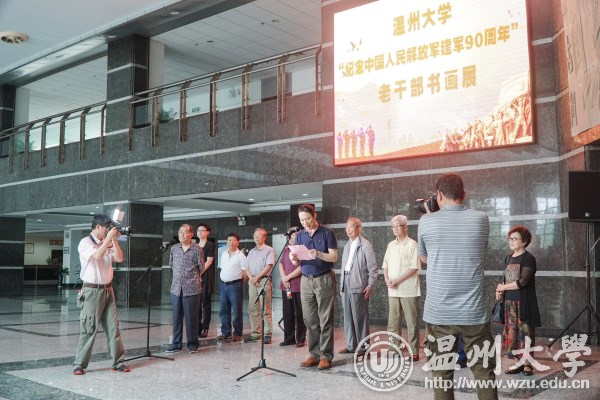 翰墨歌长城,丹青颂军魂。正值全国人民喜迎中国人民解放军建军90周年和党的十九大胜利召开之际,由校党委宣传部、老干部工作部主办,学校老干部书画院承办的“纪念中国人民解放军建军90周年书画展”在育英图书馆一楼展厅开展。离退休老领导陈齐才、金礼义、林选青、毛政敏,党委副书记牟德刚,党委委员、宣传部长潘玉驹以及一百多名师生代表出席开幕式。