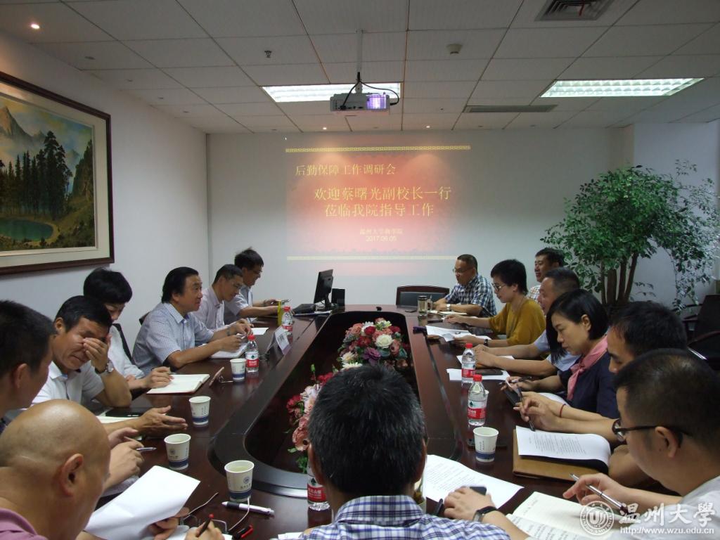“希望学校加快推进国际化教学和校园环境的改造、提升,国际楼更应该体现国际化和中华传统文化的融合。”“教学楼应该营造一个开放的、和谐的、多元化的师生学习交流环境,人文楼更应该在细节上体现人文色彩。”…… 日前,副校长蔡曙光,计财处、国有资产与实验室管理处、保卫处、校园建设与后勤管理处、后勤集团等单位负责人一行深入各学院调研后勤保障工作。各学院领导班子、科室负责人及教师代表参加调研座谈。 会上,各学院就校园环境建设、学院文化氛围营造、财务报销、设备采购、安全隐患以及后勤服务等方面提出意见和建议。蔡曙光一行针对所提问题进行现场解答。 蔡曙光充分肯定了各学院为学校后勤保障工作所做的努力,指出,“十三五”期间,学校将继续完善各项管理制度,努力提高管理服务水平,在管理中体现服务,在服务中规范管理,促进学校更好更快发展。蔡曙光希望,各部门通力合作,不断推进学校后勤保障工作,更好地服务于教学、科研,服务于师生,为建设具有鲜明地域特色、国内知名的教学研究型综合性大学提供有力、优质、高效的后勤服务保障。