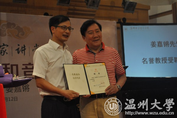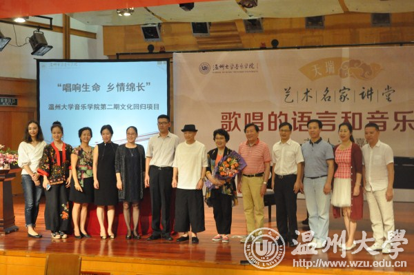 6月12日下午,我校音乐学院举办第二期“唱响生命,乡情绵长”文化回归项目。温籍著名歌唱家、国家一级演员、被誉为“中国古诗词演唱第一人”的姜嘉锵,温籍著名女高音歌唱家金家勤,温籍著名音乐人吴涤清,市音乐家协会副主席戴凯等温州音乐界人士,副校长方益权,音乐学院全院师生参加活动。