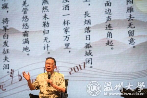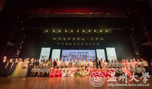 6月9日晚,我校第二十五届校园文化节闭幕式暨“跨越千年的歌”中国诗词吟唱音乐会在育英大礼堂举行。本次活动由校党委宣传部、团委主办,音乐学院承办。校领导林娟娟、赵敏、吴金法、郑信军,学校师生代表参加闭幕式并欣赏音乐会,现场座无虚席。音乐会还吸引了不少市民前来观看。 党委副书记赵敏致闭幕辞。他指出,校园文化节是学校辐射社会的文化窗口,是全体师生交流思想,凝聚共识,提升素质的良好平台。他希望全体师生携手努力,以繁荣校园文化为己任,为学校的建设和发展贡献青春、智慧和力量。 音乐会由序曲、尾声和四个篇章组成,以“吟唱经典诗词,弘扬传统文化”为主题,意在弘扬中国优秀传统文化,激发广大师生对优秀传统文化和古典音乐的热爱之情。师生通过吟唱、朗诵、小合唱、钢琴、民族乐器、舞蹈等多种艺术表现形式生动演绎了《关雎》《阳关三叠》《丑奴儿》《满江红》《黄鹤楼送孟浩然之广陵》《红豆词》《葬花吟》等十几首古诗词作品;温州市舞蹈家协会主席张德华等倾情演绎了舞蹈《寒山僧踪》;被誉为“中国古诗词演唱第一人”、著名温籍歌唱家、82岁高龄的姜嘉锵先生和我校原音乐系主任姜嘉镳先生分别吟诵演唱了《渔家傲》《钗头凤》等,感情饱满,表演精致,将古典诗词的韵味体现得淋漓尽致……节目精彩纷呈,现场观众深深陶醉于由音乐、舞蹈、诗词相结合所带来的视听盛宴。