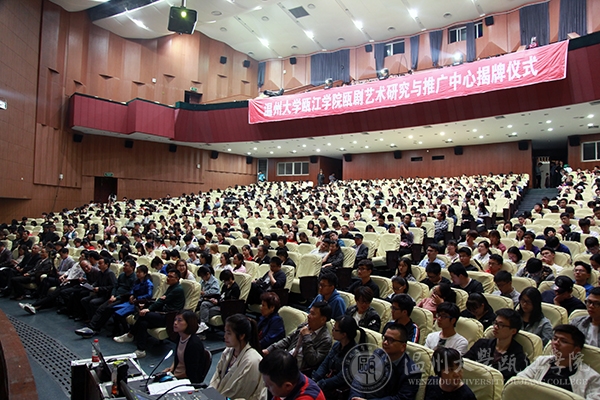 为传承和弘扬优秀的民族文化,搭建高雅艺术进校园的平台,4月24日晚,我校瓯江学院瓯剧研究与推广中心成立仪式暨经典瓯剧进校园活动在育英大礼堂演艺厅隆重举行。副校长方益权,温州市文广新局副局长柳升高,温州市瓯剧艺术研究院院长蔡晓秋,有关学院负责人,学校师生代表、温州市瓯剧艺术爱好者参加活动。