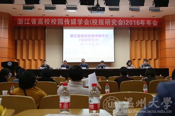 1月9日,浙江省高校校园传媒学会(校报研究会)2016年年会在我校举行。校党委副书记牟德刚,省委教育工委宣教处副处长吕明再,校党委委员、宣传部长潘玉驹,省高校校园传媒学会副理事长张芝萍、刘修敏、贾侃出席会议,省内各高校媒体工作者参加会议。