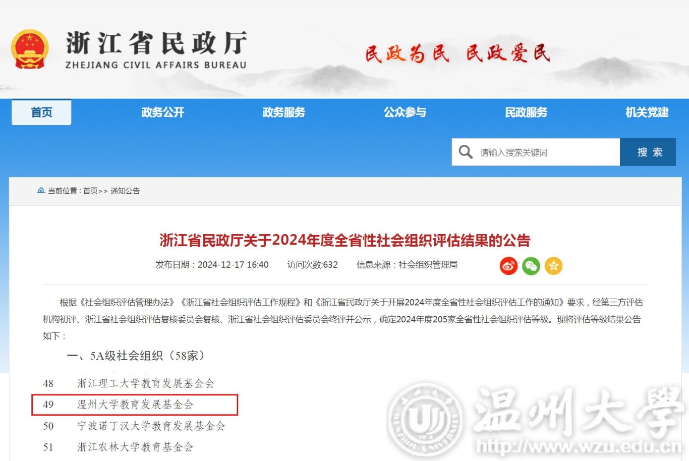 12月17日,浙江省民政厅正式发布了《关于2024年度全省性社会组织评估结果的通报》,星空平台教育发展基金会通过复评再次获评“5A级社会组织”称号。这是校基金会继2019年12月首次获评5A级后,再次获社会组织评估最高等级。