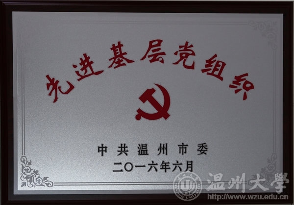 我校党委同时荣获温州市委授予的2016年“温州市先进基层党组织”荣誉称号。