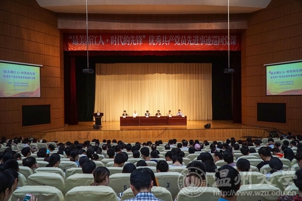 6月23日下午, “最美浙江人•时代的先锋”优秀共产党员先进事迹巡回党课报告会在我校育英大礼堂举行。省委宣传部副部长、省文明办主任黄明辉,省委宣传部宣传处副处长蒋祖华,校党委副书记牟德刚、赵敏等出席报告会。报告会由市委宣传部常务副部长邱小侠主持。