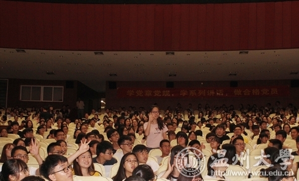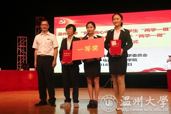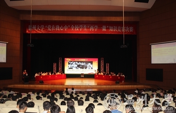 6月12日晚,我校“党在我心中”全校学生“两学一做”知识竞赛决赛暨全校党务骨干培训开班仪式在大学生活动中心育英大礼堂举行。校党委委员、组织部长方益权,宣传部、研工部、学工部负责人,各学院、学区的分管书记,全校教工、学生党支部书记,学生党员代表共计1200余人观看并参与活动。 经过第一轮笔试预赛,人文学院、马克思主义学院、法政学院、超豪学区、瓯江学院一队、瓯江学院二队、溯初学区、生命与环境科学学院等8支代表队进入决赛。决赛由个人必答、小组共答、小组抢答、风险答题、附加抢答等五个环节组成,内容涵盖《中国共产党章程》《中国共产党廉洁自律准则》《中国共产党纪律处分条例》《中国共产党党员权利保障条例》《习近平总书记系列重要讲话读本(2016年版)》《中国近现代史纲要(2015年修订版)》等。同时,比赛还设置了现场观众抢答环节。比赛现场气氛热烈,学习教育氛围浓厚。最终,马克思主义学院代表队获得一等奖。