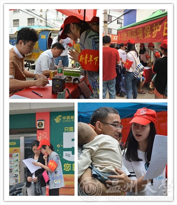 【科普宣传,全民参与】 “妈妈,这个纸变成红色的了。”“是呀,变成红色说明这个溶液是酸性的哦,它的PH值比较低,所以就变成了红色。”……在白石街道闹市区,生环学院联合乐清白石街道团工委共同举办了“6•5”环境日宣传活动,以实际行动全力推进生态文明建设,加快实现“天蓝、水清、地绿”的环保梦想。活动中,志愿者进行“五水共治”知识宣传,鼓励村民亲自动手尝试检测水质。