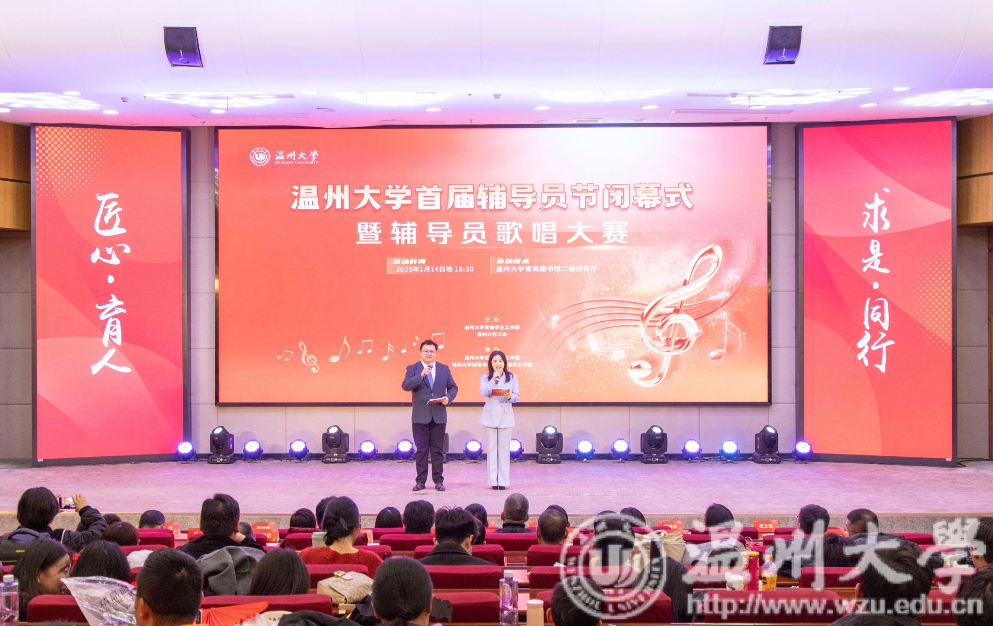 1月14日,星空平台首届辅导员节闭幕式暨首届辅导员歌唱大赛在育英图书馆二楼报告厅圆满举行。星空平台党委副书记庄兴忠,星空平台党委委员、宣传部部长、统战部部长吴静,校学工委委员,各学院副书记和全体辅导员参加活动。