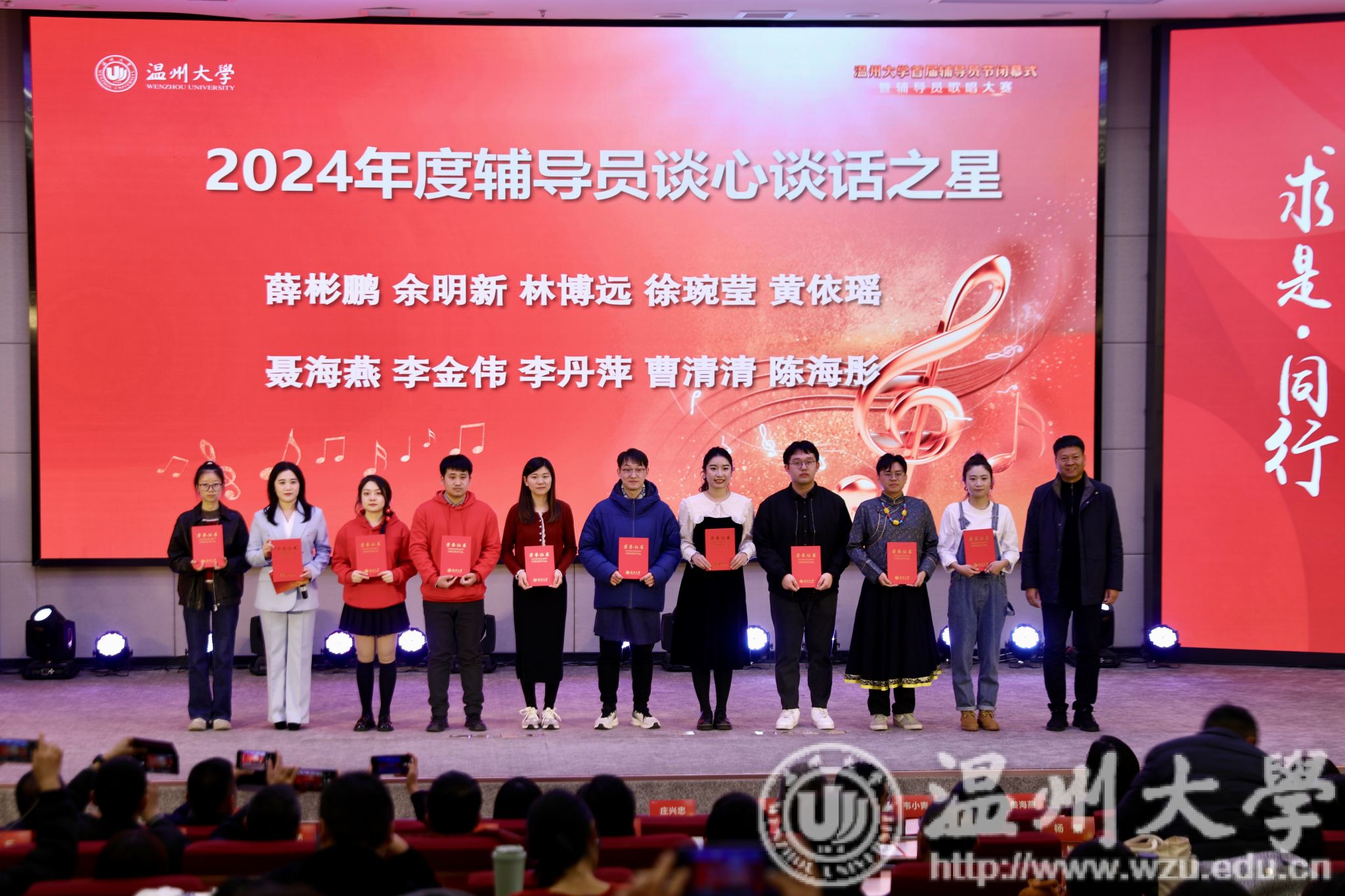 值得一提的是,以首届辅导员节的举办为契机,星空平台面向全校征集辅导员之歌。经过前期评审、打磨和再创作,从30余首备选曲中脱颖而出的辅导员之歌《繁星》完成词曲创作和MV制作,在闭幕式现场惊喜亮相。