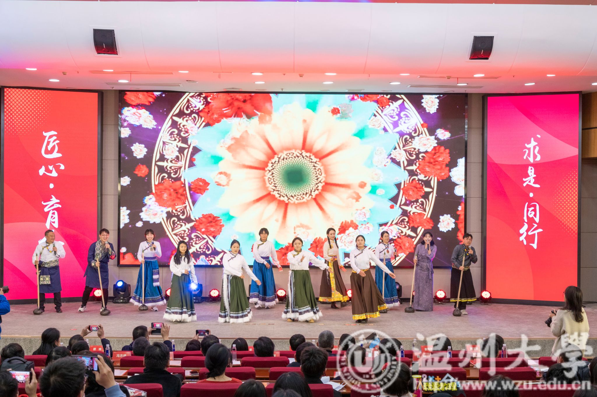 “所有收获的小美满,都与学生有关。” “夏天会过去,秋刀鱼会过期,但你的辅导员永远会在背后等你。”首届辅导员歌唱大赛吸引来自全校18个学院的辅导员们各展“十八般武艺”。一曲《敬业阵线联盟》,唱出了对学生工作的赤诚热爱;一首《再回首》,回首那些关于青春、成长与回忆的美好瞬间。辅导员们结合朗诵、舞蹈或乐器演奏等形式创意编排,将日常学生工作中的心得体会与切身感受融入旋律和音符里,以歌传情,以艺载道。现场掌声雷动,气氛热烈温馨。