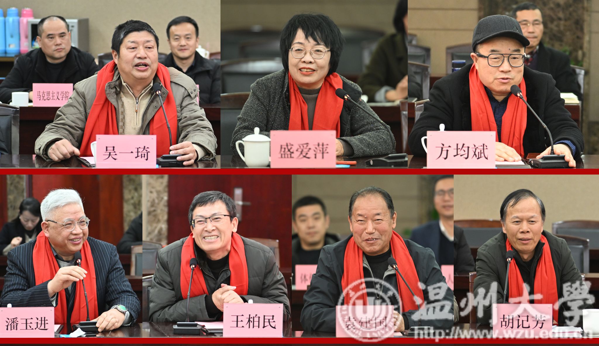 随后,王柏民、吴一琦、胡记芳、潘玉进、袁建国、盛爱萍、方均斌等七位老师交流荣休感言。他们深情回顾了在温大工作、生活、奋斗的历程与教育生涯的精彩故事,述说了对教育事业的热爱与不舍,表达了继续为教育事业和温大建设发展发光发热的决心和期待。他们衷心希望温大办学越来越好、事业蒸蒸日上。