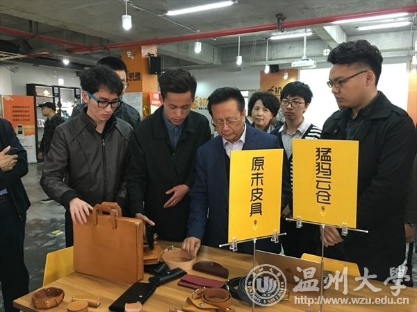 考察过程中,来自我校商学院14级学生马谦诚的“猛犸跨境云仓项目”和美术与设计学院13级学生郭笃鹏的“原未皮具项目”引起了陈昌智的浓厚兴趣。两位项目负责人分别就业务范围、技术支撑、服务对象以及推广前景等进行了详细介绍。