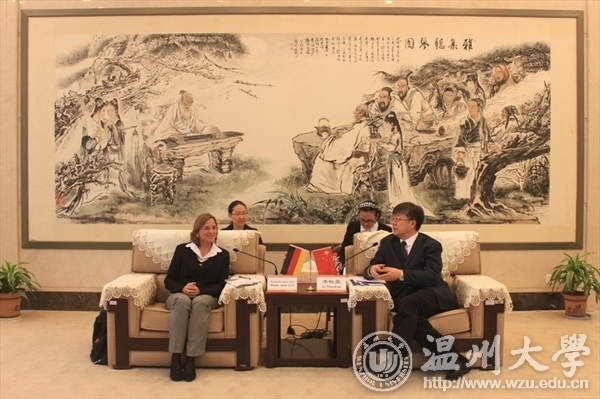 11月12日上午,德国吉森市市长Dietlind Grabe-Bolz女士、吉森教育局高教处负责人Kerstin Gromes女士、德国中部黑森工业大学教授Christine Döbert女士等一行来访我校,校长李校堃与相关部分负责人热情会见客人。 李校堃简要介绍了学校概况,提出学校在“十三五”期间将进一步发展生命科学、电子信息、机械工程等一批特色学科,使学校学科的发展既能“顶天”,也能“立地”。Grabe-Bolz介绍了吉森市的基本情况与吉森市高等教育的发展状况,并希望双方能加大在师生交流、学术科研和文化活动等方面的合作。双方表示要进行深层次交流与促成合作项目的早日启动。 德国吉森市政府代表团还兴致勃勃地参观了发绣博物馆。 据了解,吉森市与温州市于2011年缔结为友好城市。该市位于德国中部的黑森州北部,地理位置优越,离德国的航空、金融中心法兰克福仅30分钟的车程。吉森市常住人口8.5万人,其中学生人口3.6万人,有“大学城”之称。全市共有大专院校4所。其中,吉森大学创立于1607年,现有2万5千名学生,是一所著名的综合性大学。该校已于2007年与我校建立友好合作关系。该大学的创始人,是被称为“化肥之父”的里比西。另外,将X射线(又称伦琴射线)应用于医学领域的著名科学家伦琴也出生在吉森市。