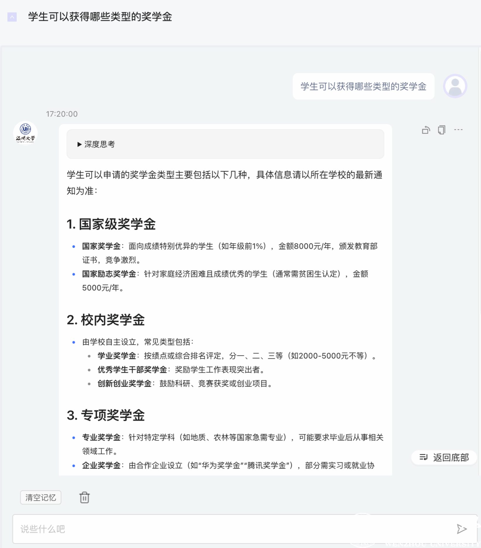 基于DeepSeek R1大模型的“星空平台师生助手”,由计算机与人工智能学院刘军副教授、顾旭波团队与学校信息技术中心相互协作部署,该系统基于星空平台学生工作知识库,具备强大的自然语言处理能力和多场景应用功能,全校师生无需登录即可使用。该模型擅长处理文本理解、信息检索、智能问答等多种任务,并能根据用户的个性化需求提供定制化的服务。例如,师生可以通过该助手快速查询课程安排、学术资源、校园公告等信息,还能获得学习建议、科研辅助等智能化支持。