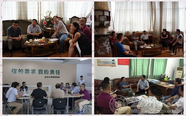 图为校党委书记陈福生、副校长薛伟认真听取校本部、瓯江学院、城市学院、成教学院招生工作汇报。